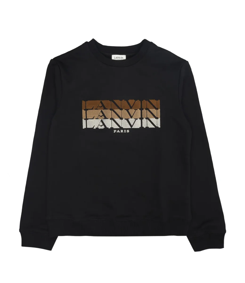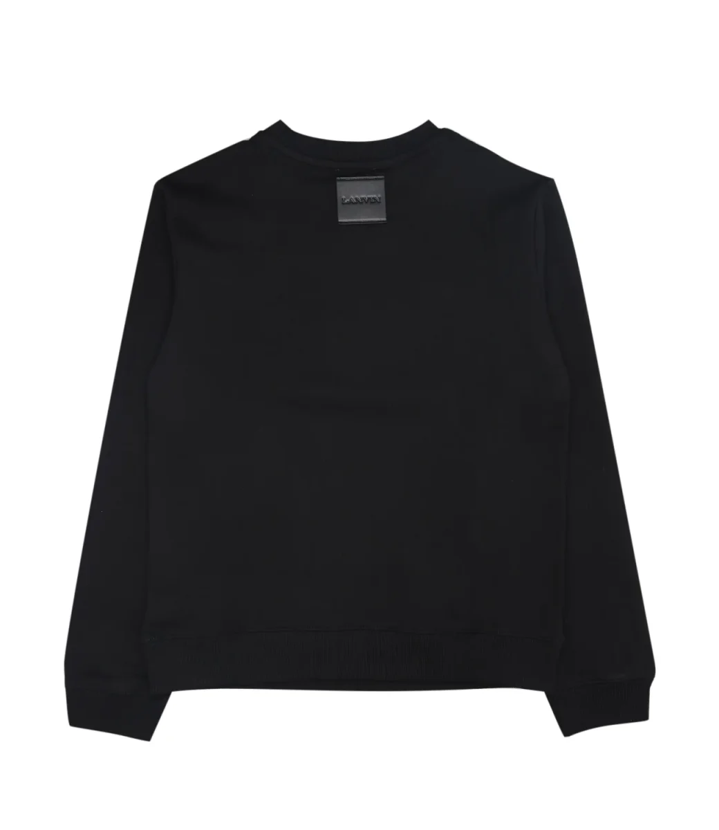 Felpa Lanvin Enfant in cotone, maniche lunghe con polsini e linee pulite. Petto definito dal logo a punto fitto con contorni netti; sul retro etichetta in tessuto morbido con logo, posizionata al retro del collo. Comoda e curata nei dettagli, perfetta per un look essenziale.