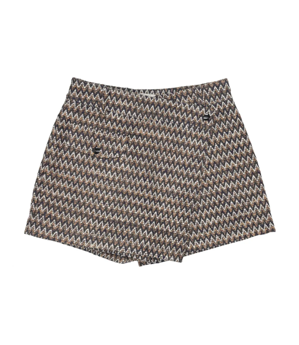 Shorts Lanvin Enfant modello con motivo chevron multicolore. Taglio a portafoglio con chiusura a bottoni, etichetta in pelle e orlo asimmetrico. Struttura leggera per libertà di movimento, adatta all’uso quotidiano