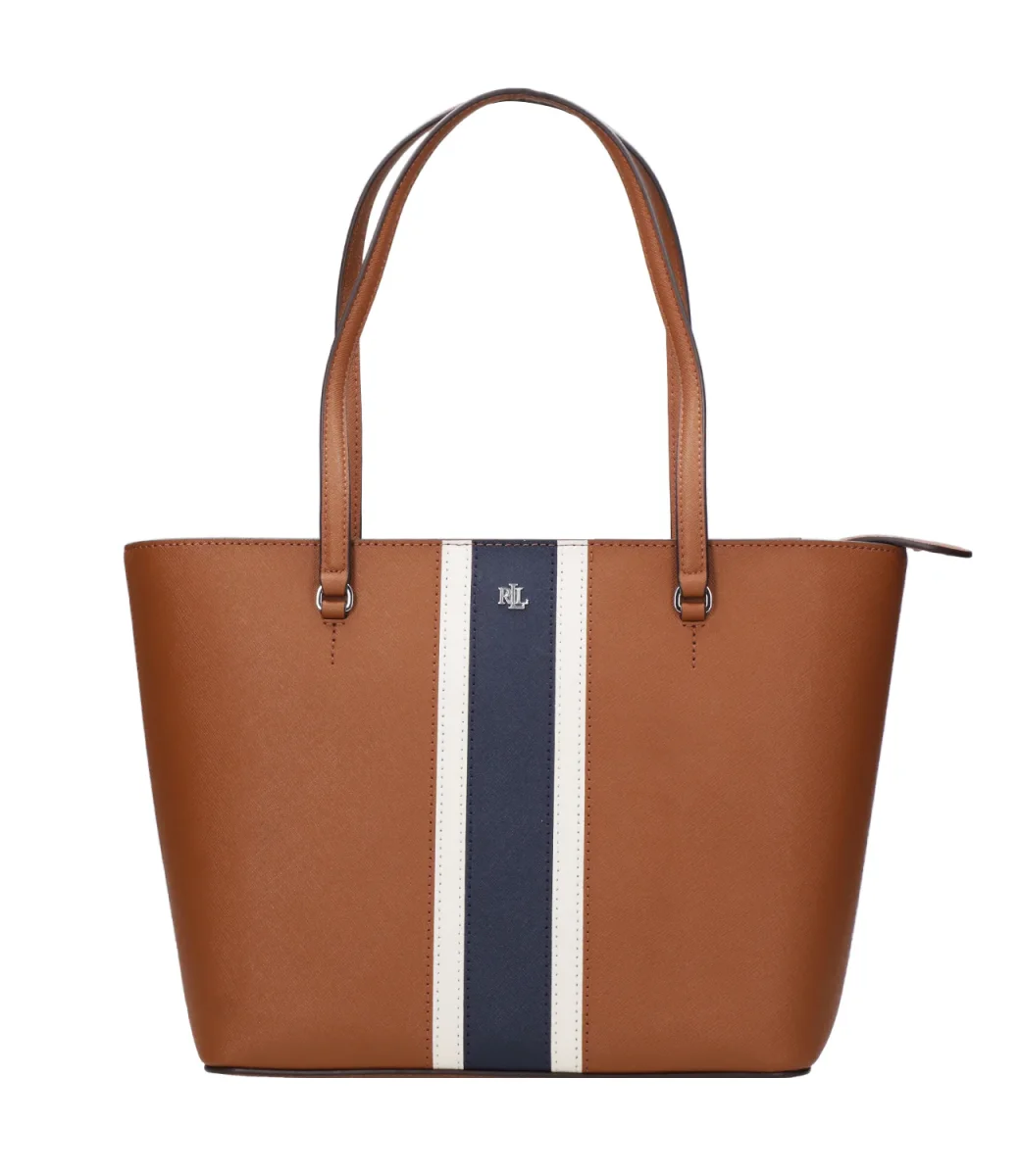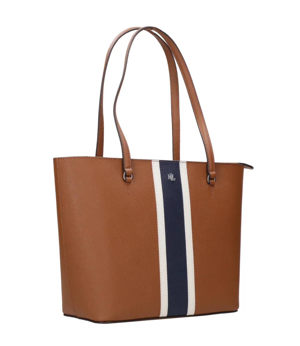 Borsa a Spalla Lauren Ralph Lauren Karly Tote Medium, elegante texture della pelle tratteggiata, la tote Karly media presenta una spaziosa silhouette, perfetta per contenere gli effetti personali. Ideale in viaggio, in ufficio o per le giornate più frenetiche, questa versione è rivisitata per la stagione con uno sportivo design a righe.