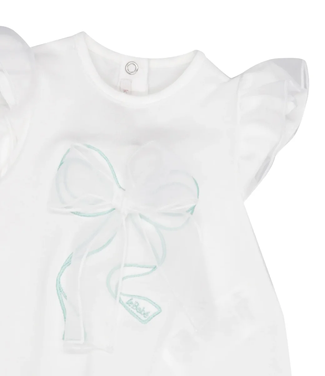 Pagliaccetto Le Bebè Enfant in misto cotone. Chiusura con bottoni sul retro e sul fondo. Logo in madreperla sul petto. Modello corto.