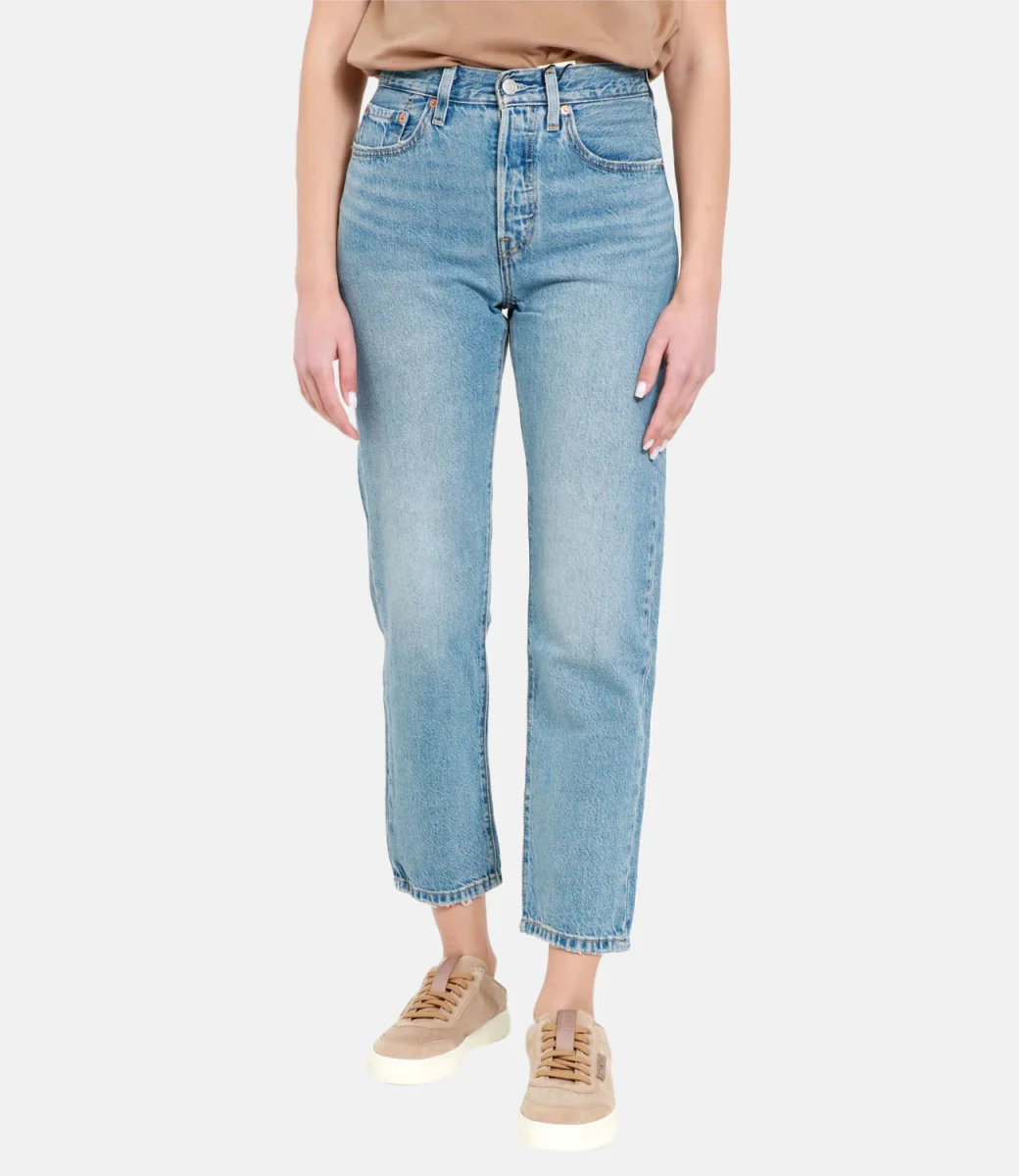 Jeans Levis 501 Crop in denim nati nel 1873 dalla creatività di Levi Strauss in persona, una silhouette classica nella parte alta ma dalla gamba accorciata che valorizza la figura.