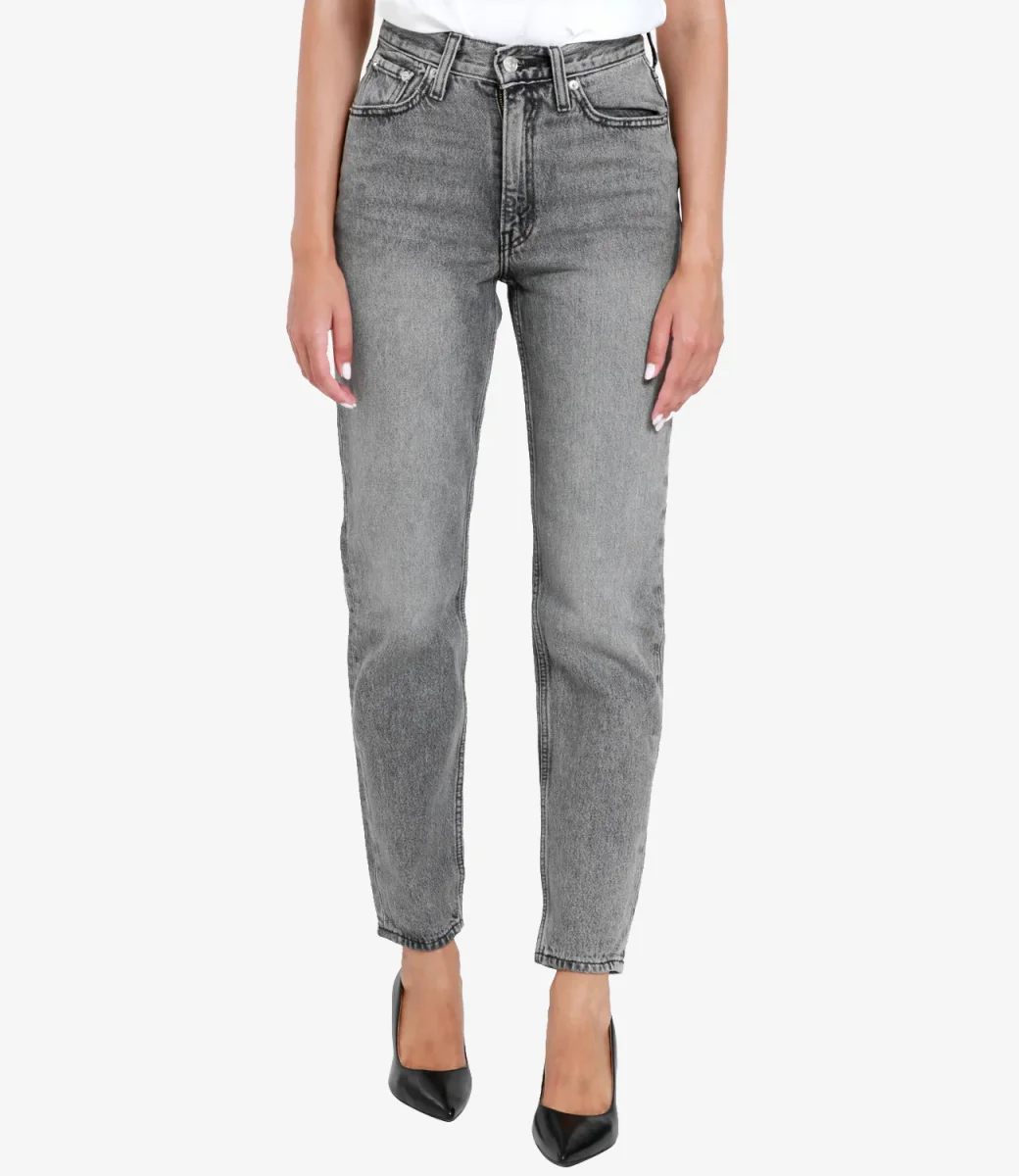 Jeans Levis ’80S Mom in denim, modello cinque tasche, vita alta con passanti e Levi strauss label sul retro, chiusura con zip con patta e bottone in metallo personalizzato, red label applicato al bordo della tasca sul retro, gamba morbida che stringe alla caviglia, orlo dritto.