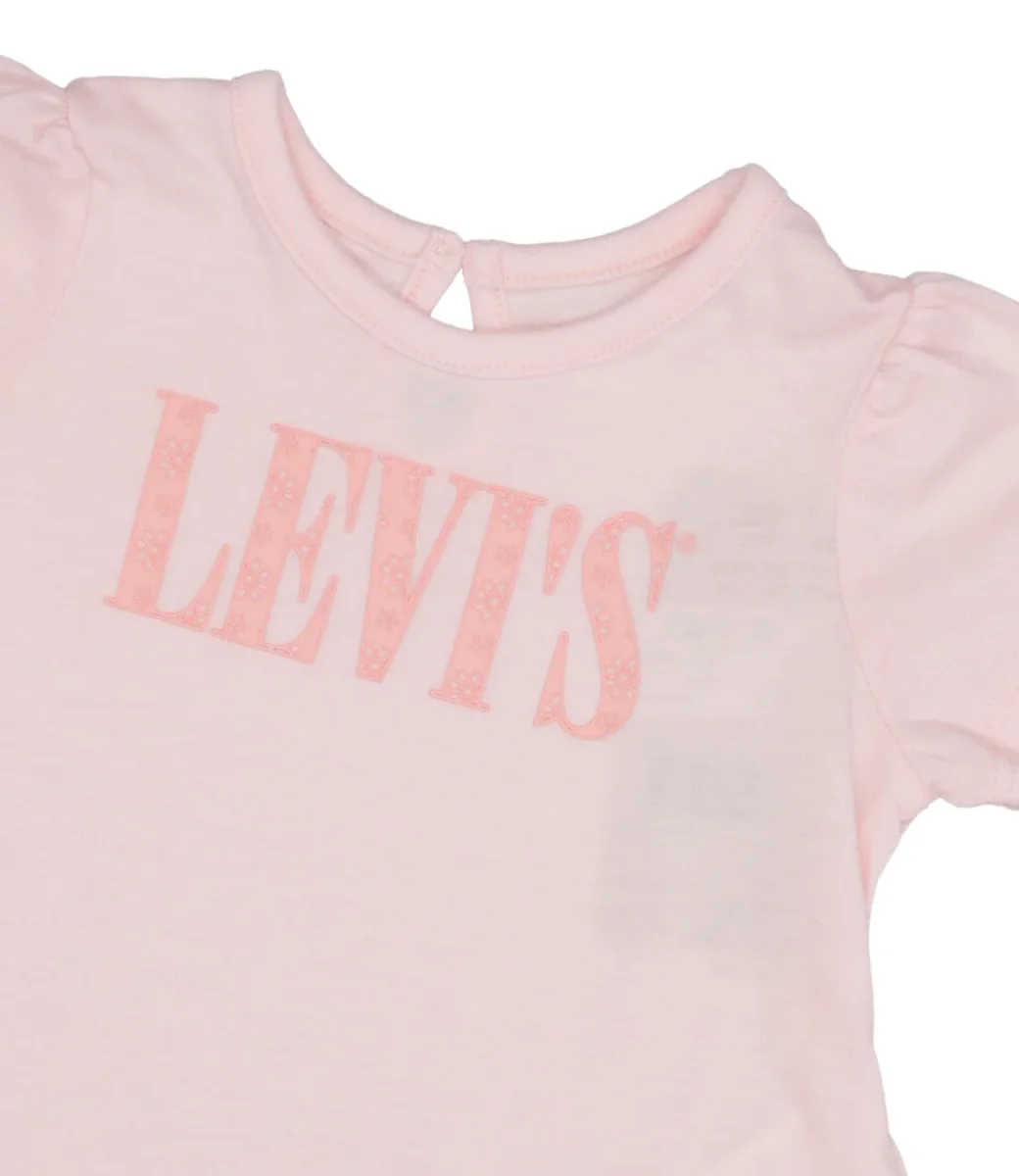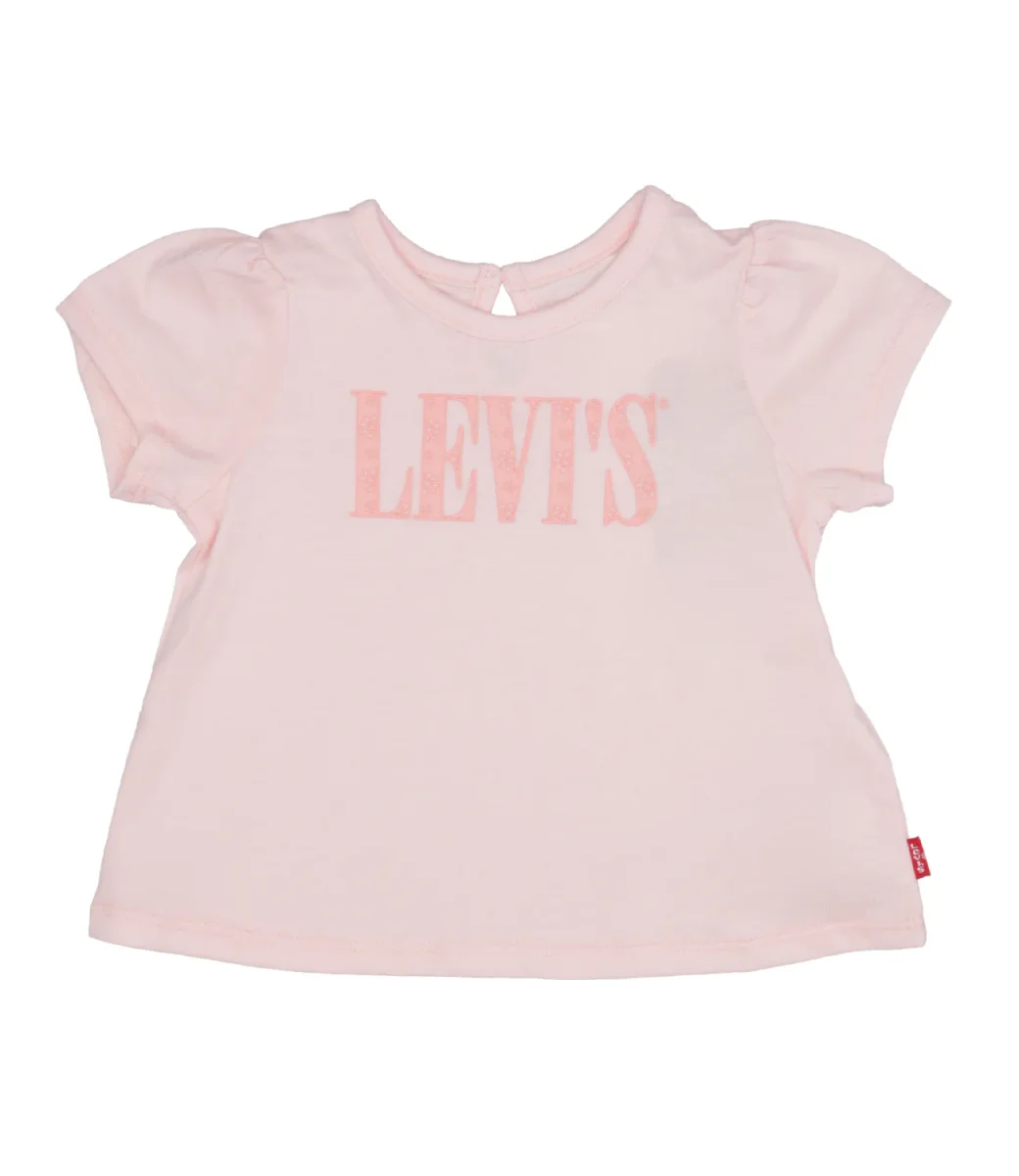 T-shirt Levis Kids in cotone, modello girocollo con maniche a sbuffo e logo con brillantini applicato sul davanti.