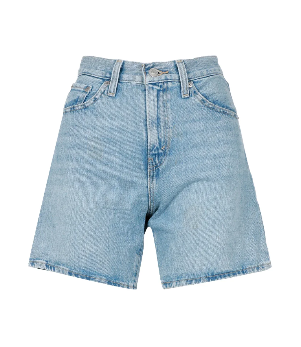 Shorts Levis High Baggy in denim, modello corto a cinque tasche, vita media con passanti e Levi strauss label sul retro, chiusura con zip con patta e bottone in metallo personalizzato sulla cintura, patch label applicato al bordo di una tasca sul retro, orlo dritto.