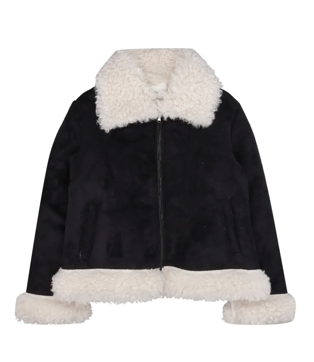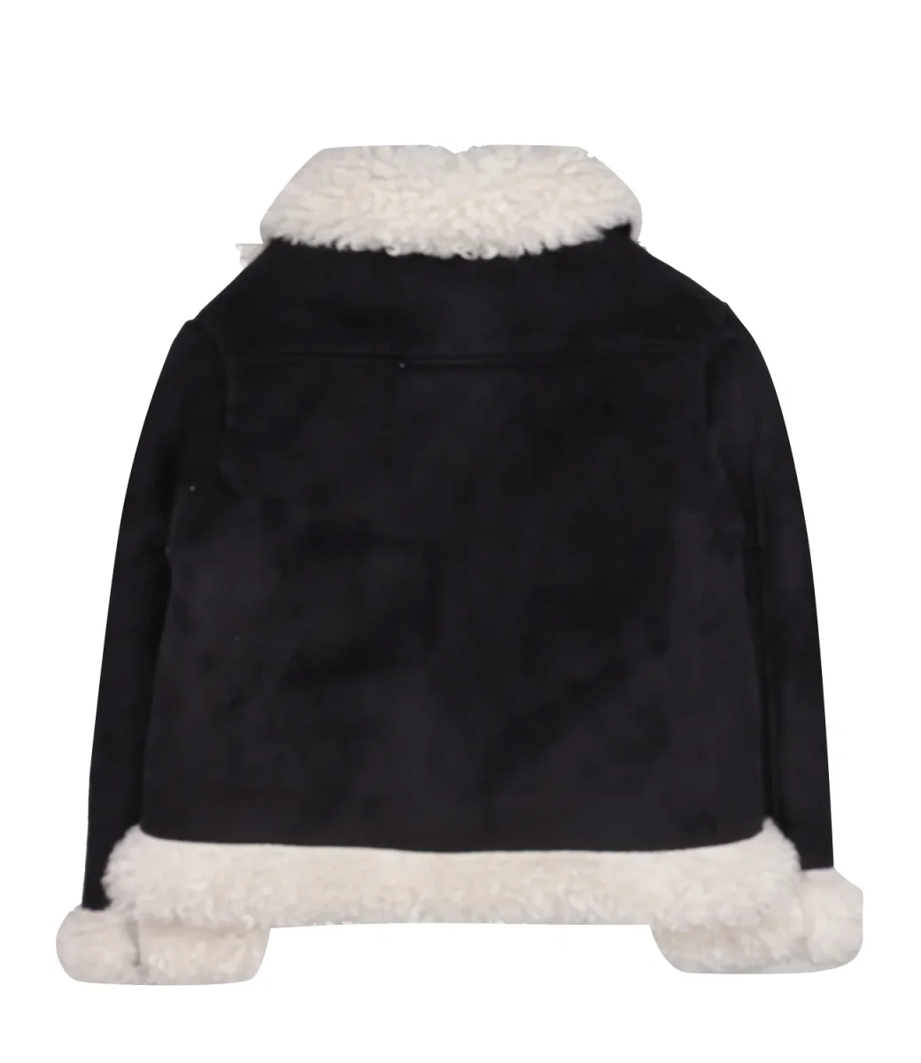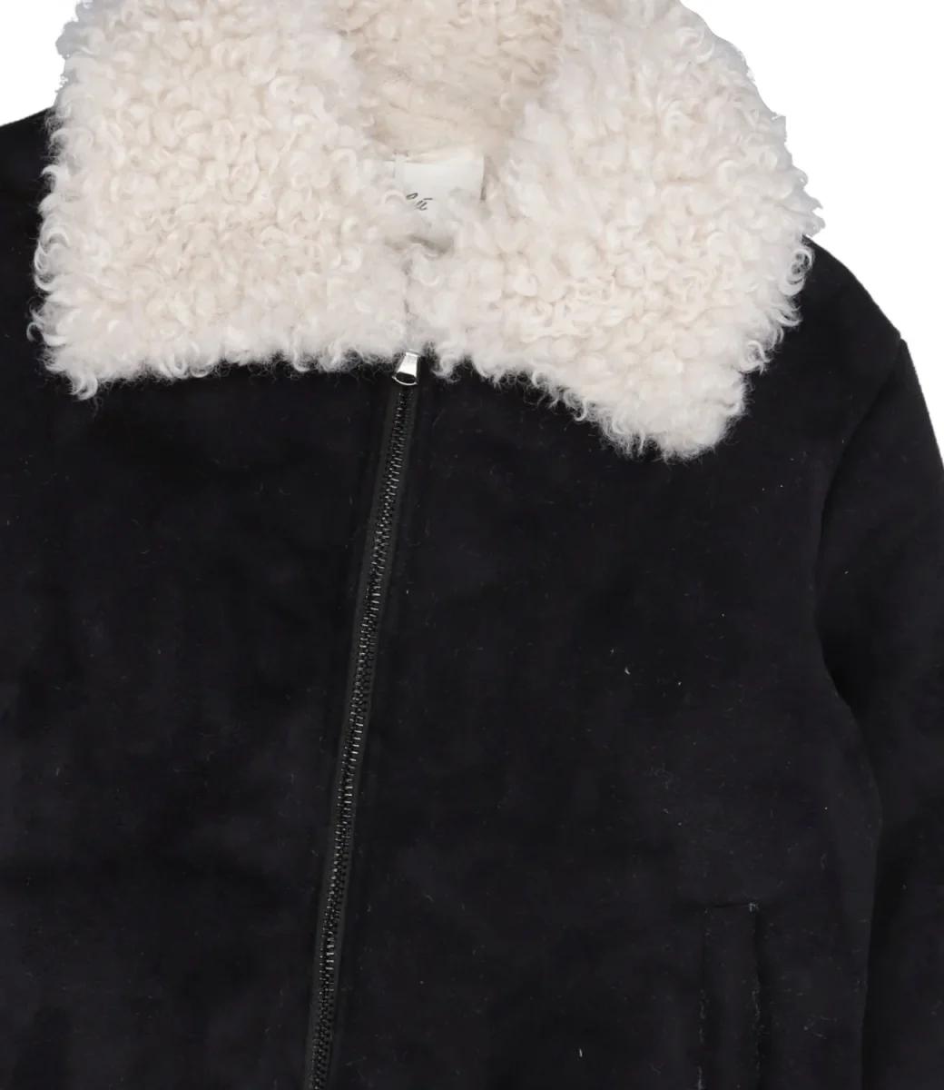 Montone Lu Lu Girl in morbida ecopelle scamosciata con interno e dettagli sul colletto e polsini in tessuto teddy, Capo caldo e sempre must have nello stile.