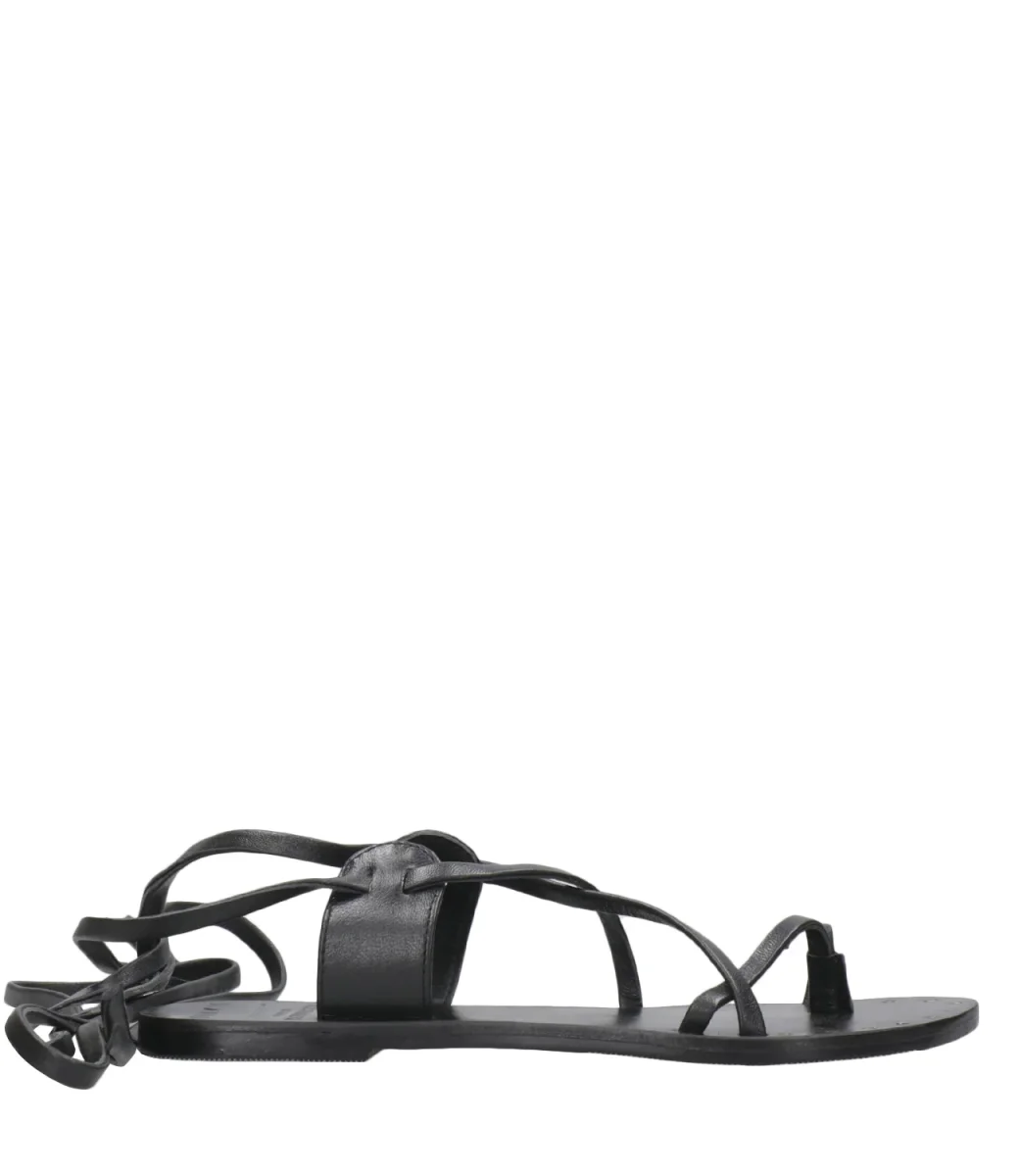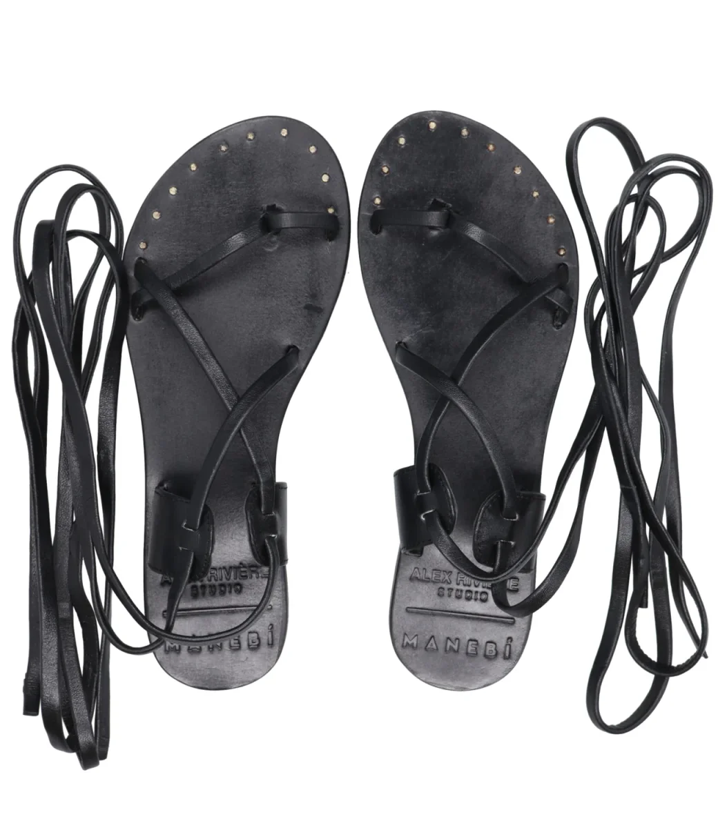 Sandalo Manebi classico design estivo con sottili lacci in pelle che si avvolgono alla caviglia. Una silhouette femminile e moderna.
