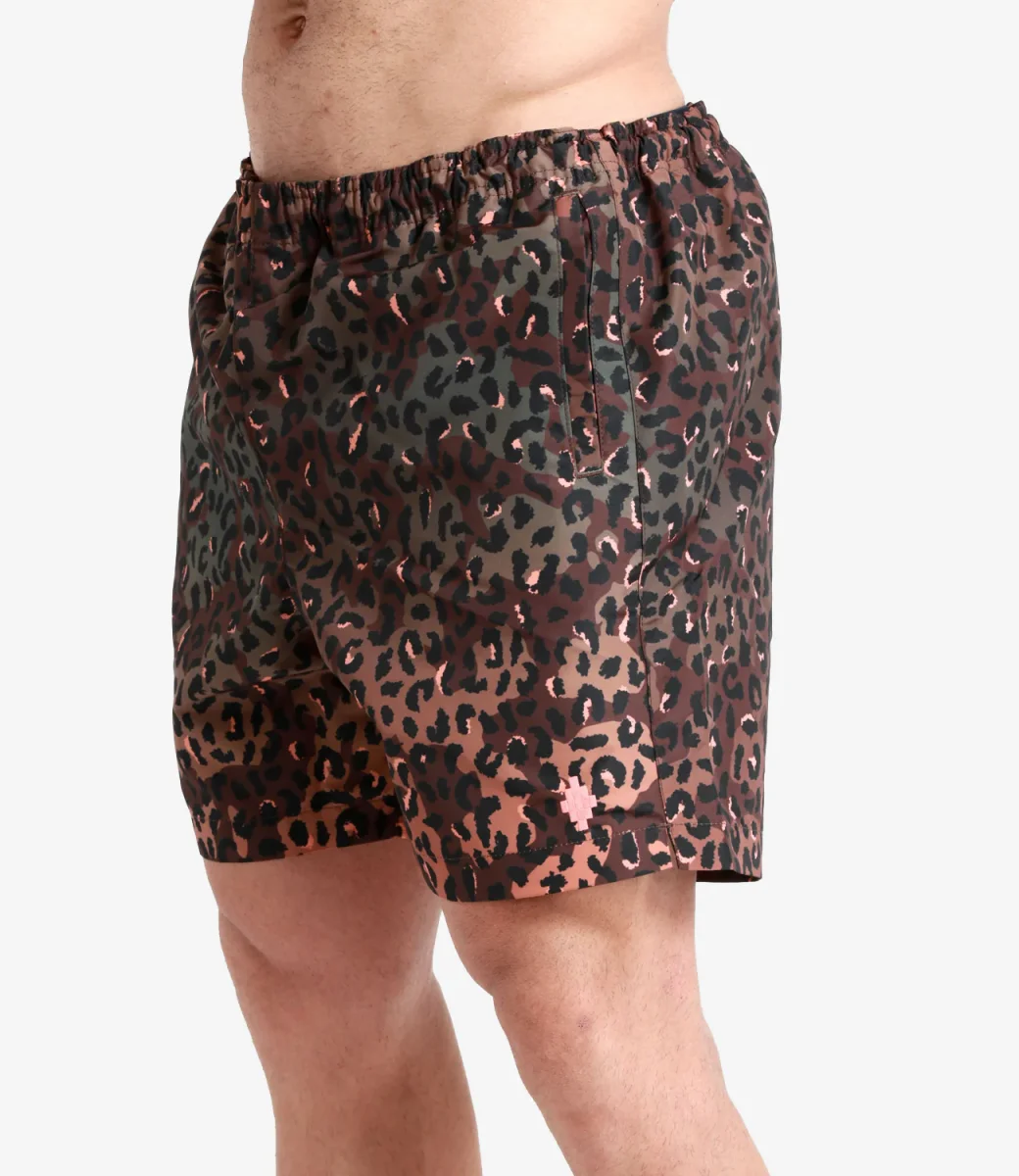 Costume boxer Marcelo Burlon fantasia animalier con elastico in vita e croce bianca frontale.