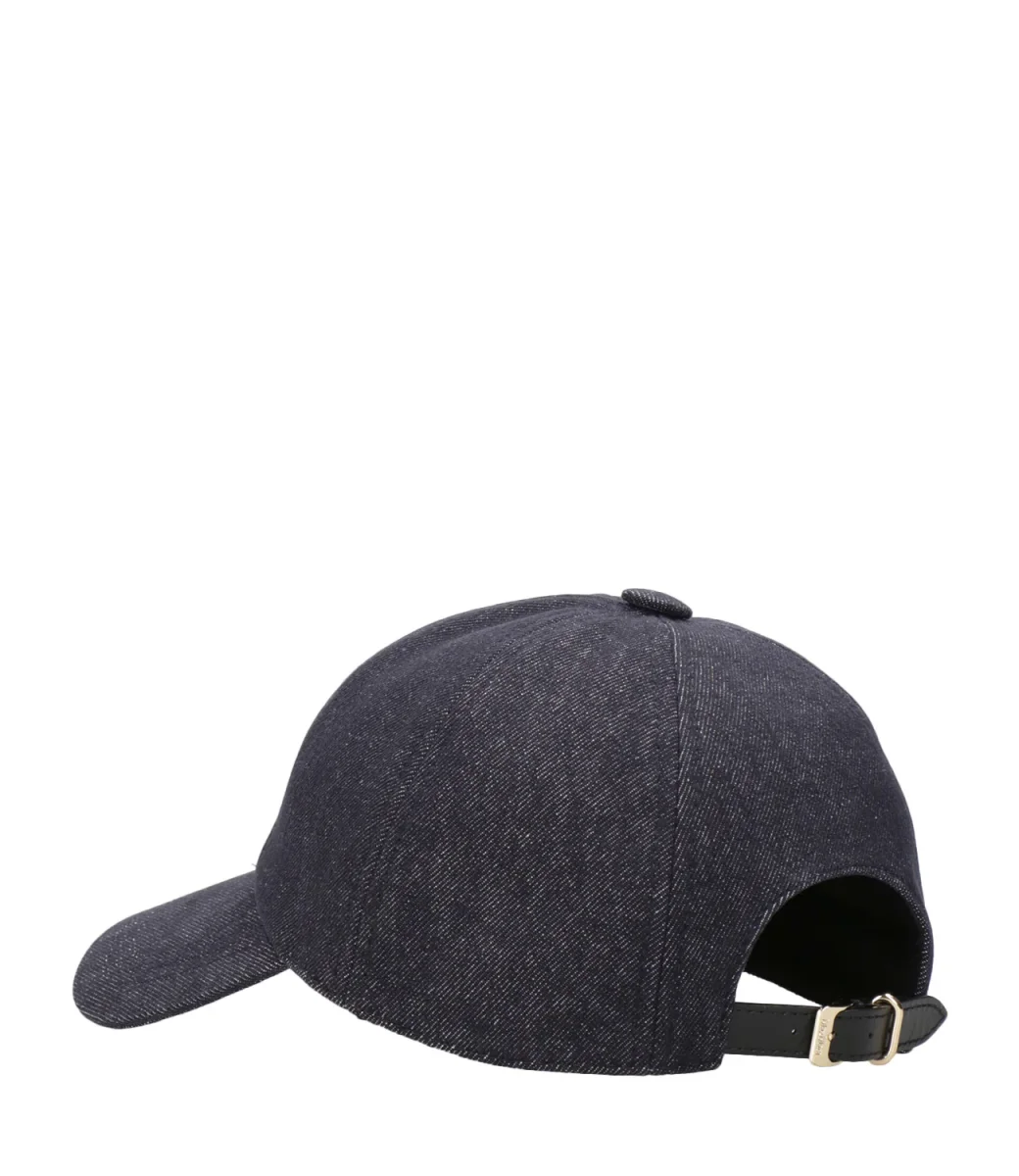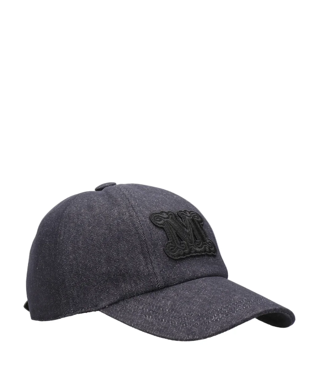 Cappello MaxMara Lella in denim di cotone, modello baseball con visiera curva, logo frontale, fibbia regolabile al retro.