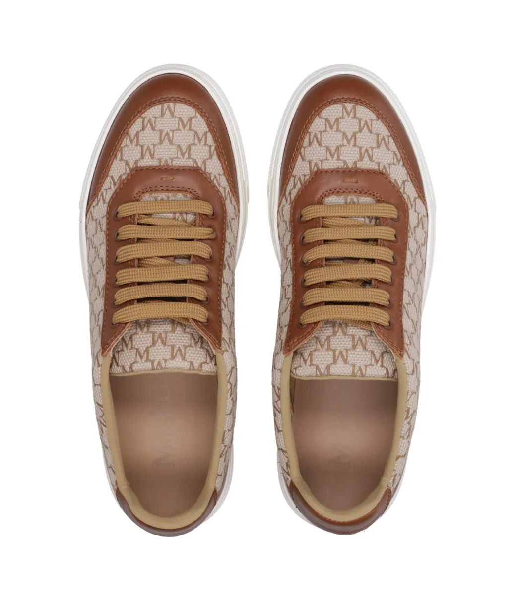 Sneakers Max Mara Citysneak modello low top realizzata in tessuto di cotone M Monogram jacquard all over con dettagli in pelle, ideale per uno stile sofisticato ma pratica per un movimento in libertà.