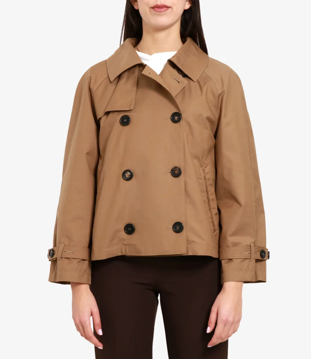 Trench Max Mara The Cube Mtctesoro realizzato in twill misto cotone tecnico. Modello reglan. Rifinito con bavolet asimmetrica sul davanti, tasche a filettone sui fianchi. Il tessuto principale contiene circa il 50% di fibra di cotone coltivata secondo i principi dell’agricoltura biologica.