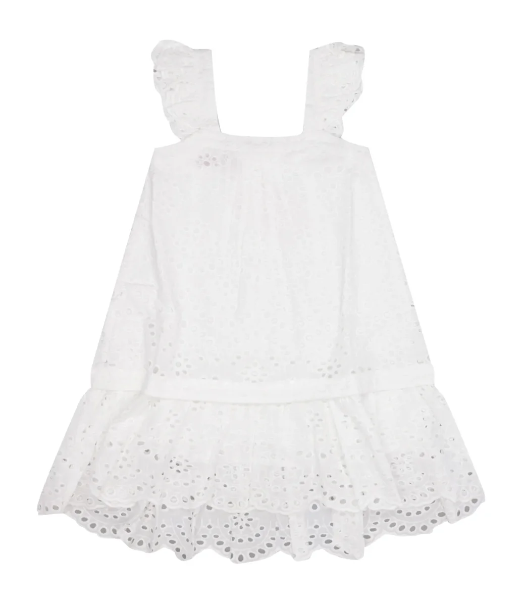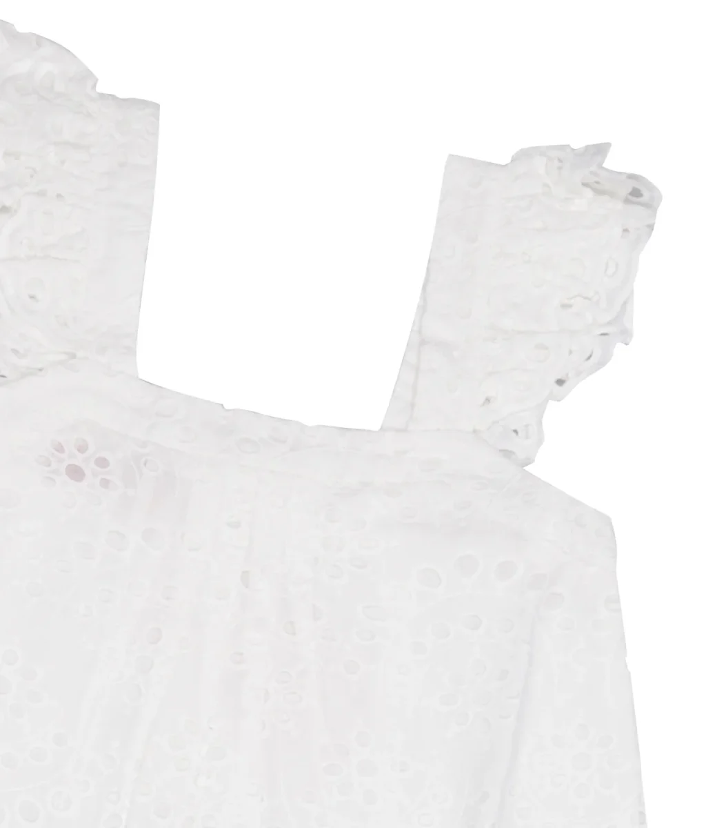 Dettagli:– Pizzo san gallo– Spalline con rouches– Gonna ampia con balze