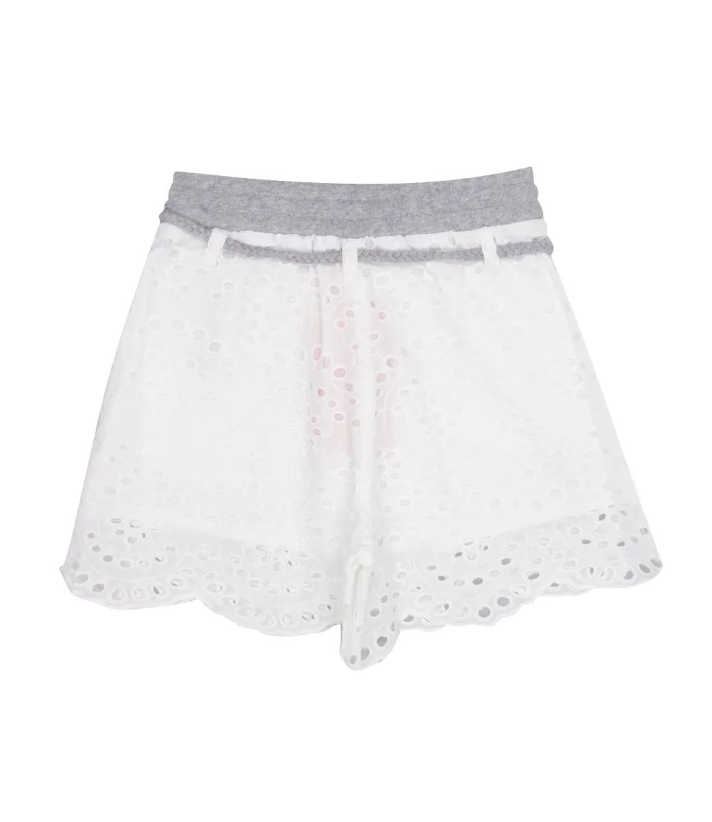 Shorts Max&Co Kids in pizzo san gallo con cintura in vita.