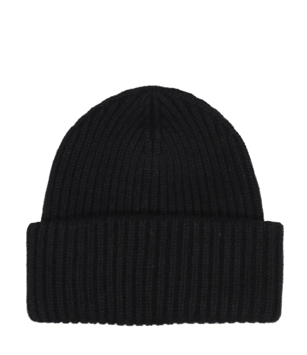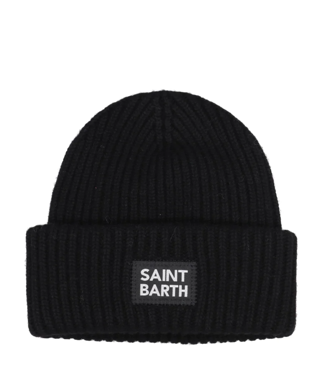 Cappello MC2 Saint Barth Kids in misto lana e cashmere, lavorazione a coste larghe, con risvolto, toppa logo sul davanti,