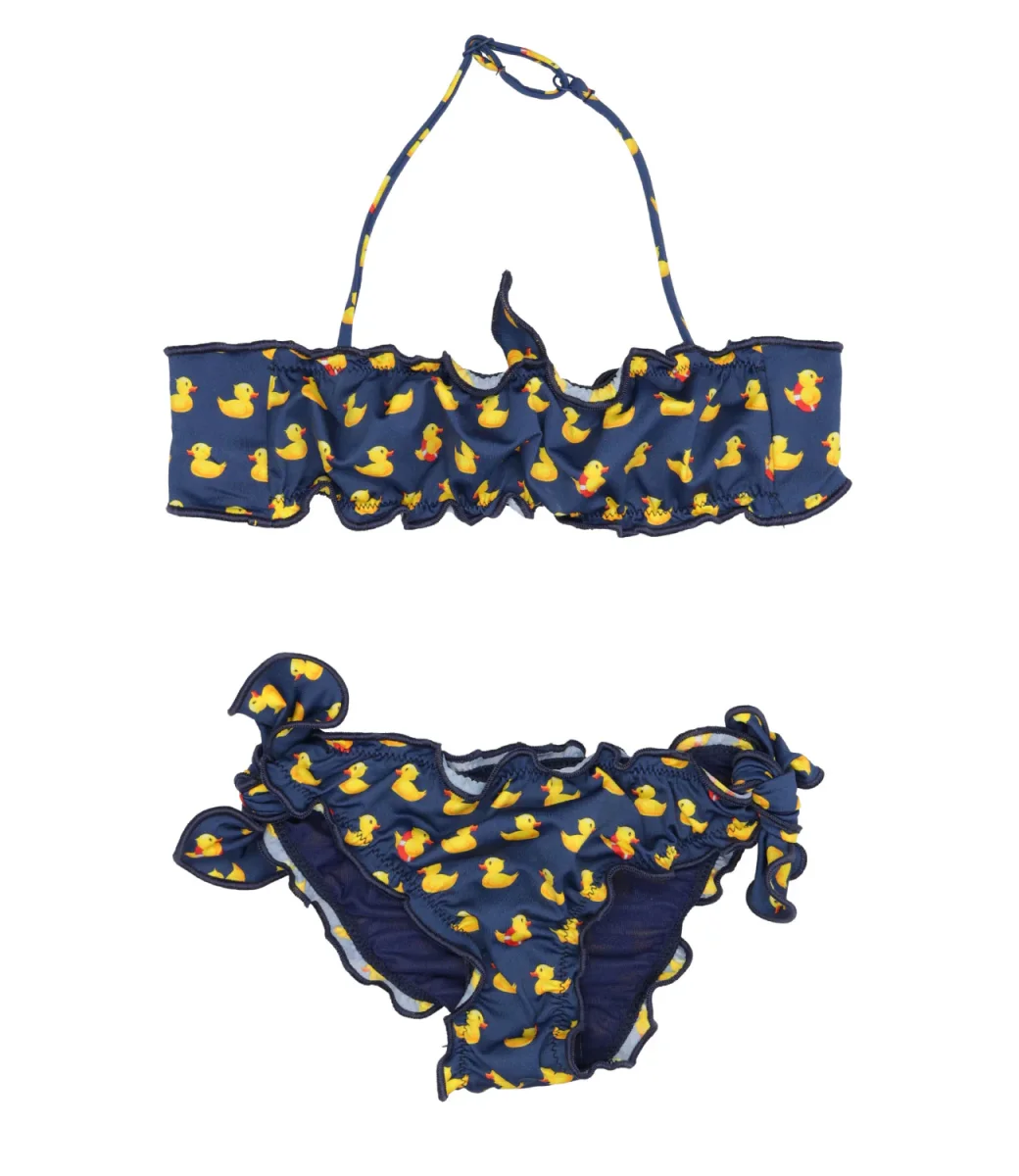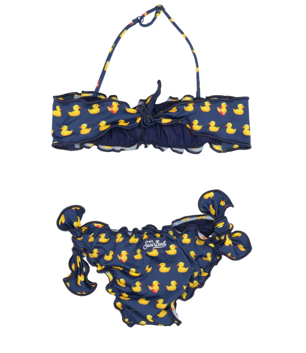 Costume bikini MC2 Saint Barth Kids in tessuto di lycra in fantasia, modello con top a fascia e slip regolare.