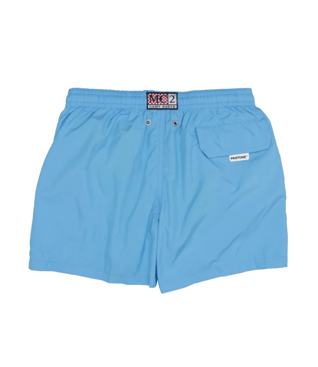 Costume Boxer MC2 Saint Barth Kids in tessuto tecnico, tasca posteriore, vita elasticizzata con coulisse, patch logo retro.