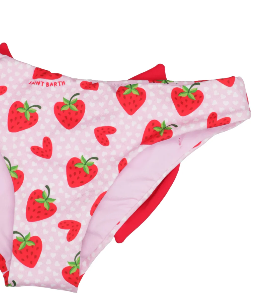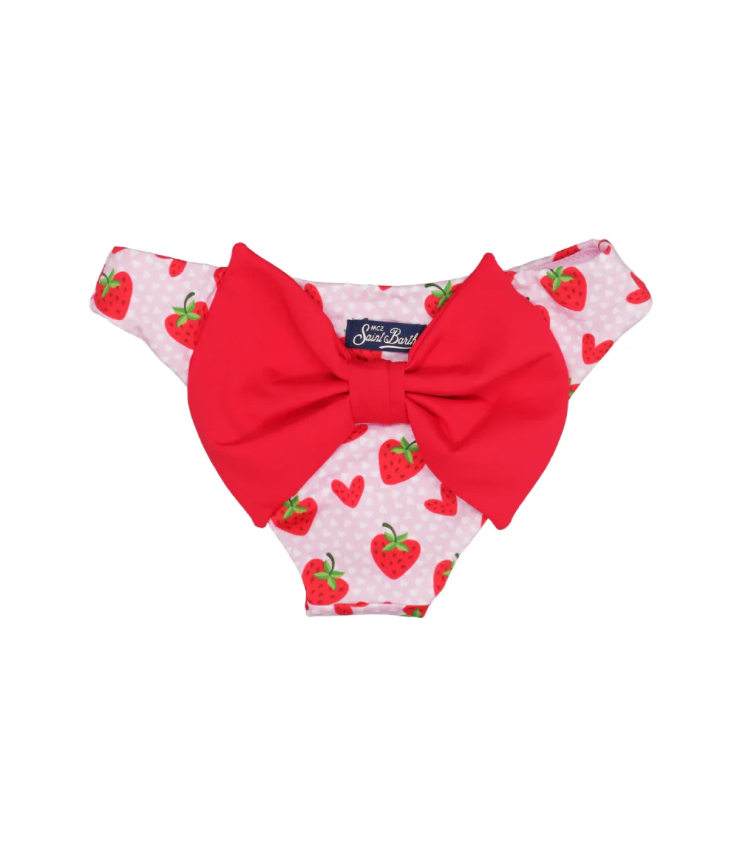 – Lycra– Fantasia con fragole e cuori all over – Maxi fiocco applicato sul retro– Tag con logo