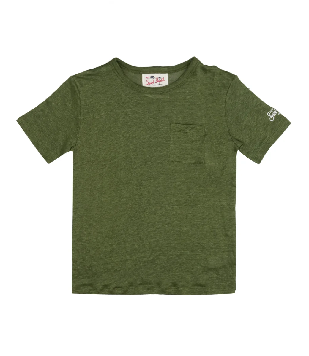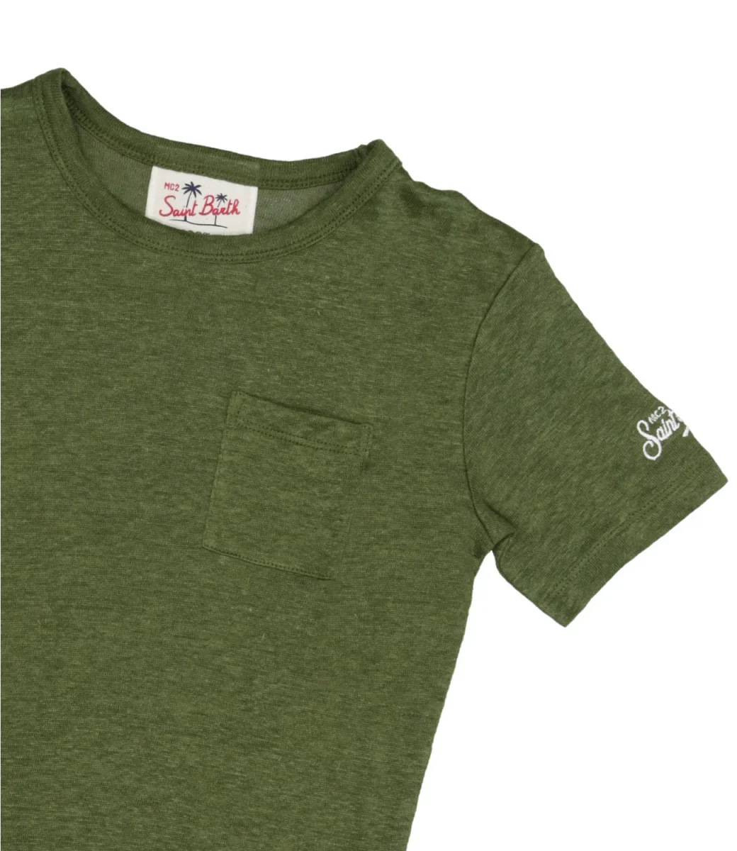 T-shirt MC2 Saint Barth Kids di cotone tinta unita con taschino frontale tono su tono.