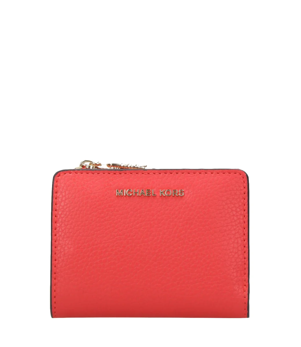 Portafogli Michael Michael Kors Empire in pelle martellata, chiusura con bottone a pressione, fessure porta tessere e documenti su entrambi i lati interni, scomparto portabanconote, tasca interna porta monete zippata con cursore logato. Logo lettering. Dettagli in metallo dorati.