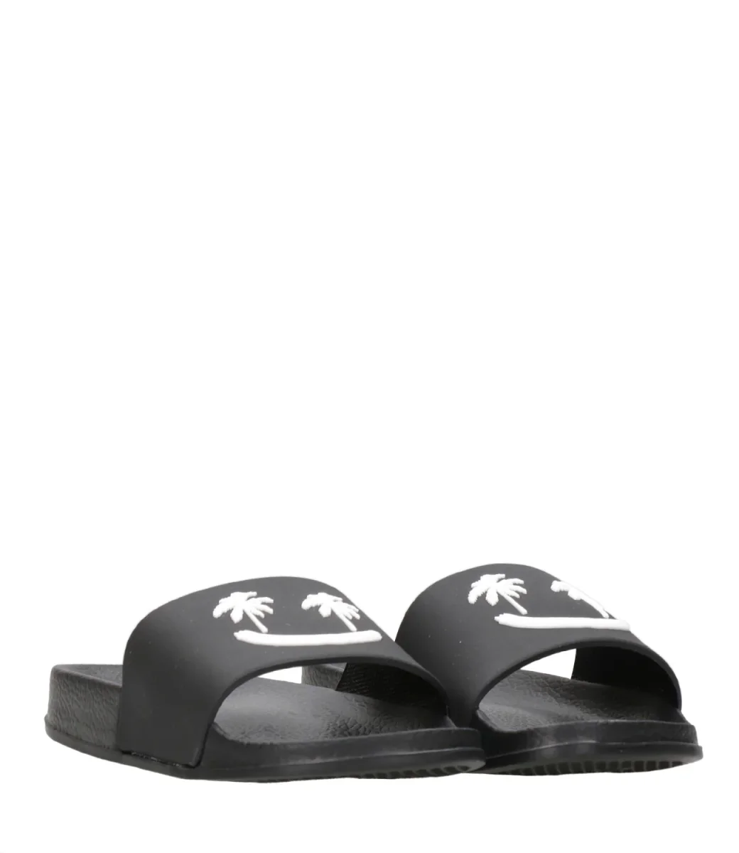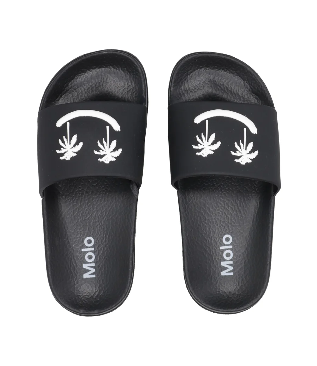 Ciabatta Molo Zhappy in gomma resistenti all’acqua, perfetti per la piscina o la spiaggia. Il cinturino raffigura una faccina sorridente con occhi di palma.