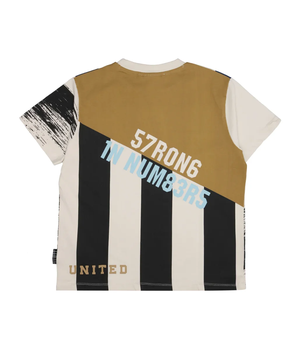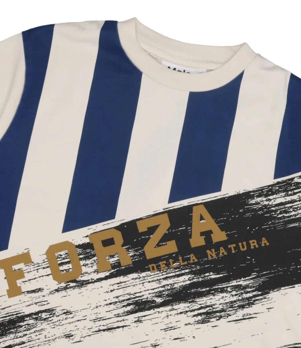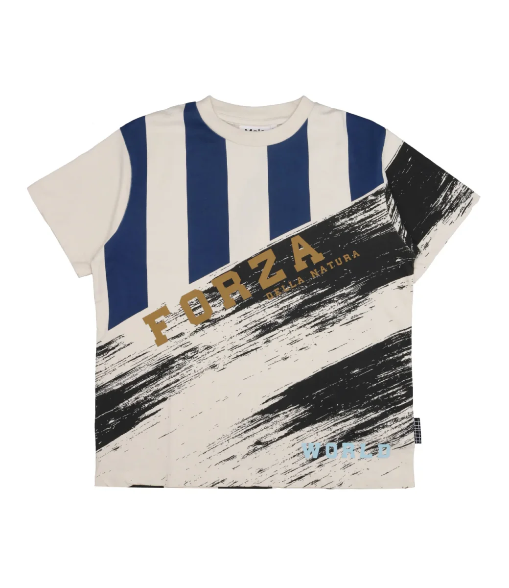 T-Shirt Molo Rodney in cotone biologico. Stampa ispirata al mondo del calcio sul davanti e sul retro. Prodotto Molo è certificato GOTS Organic da Ecocert Greenlife, licenza n. 197496