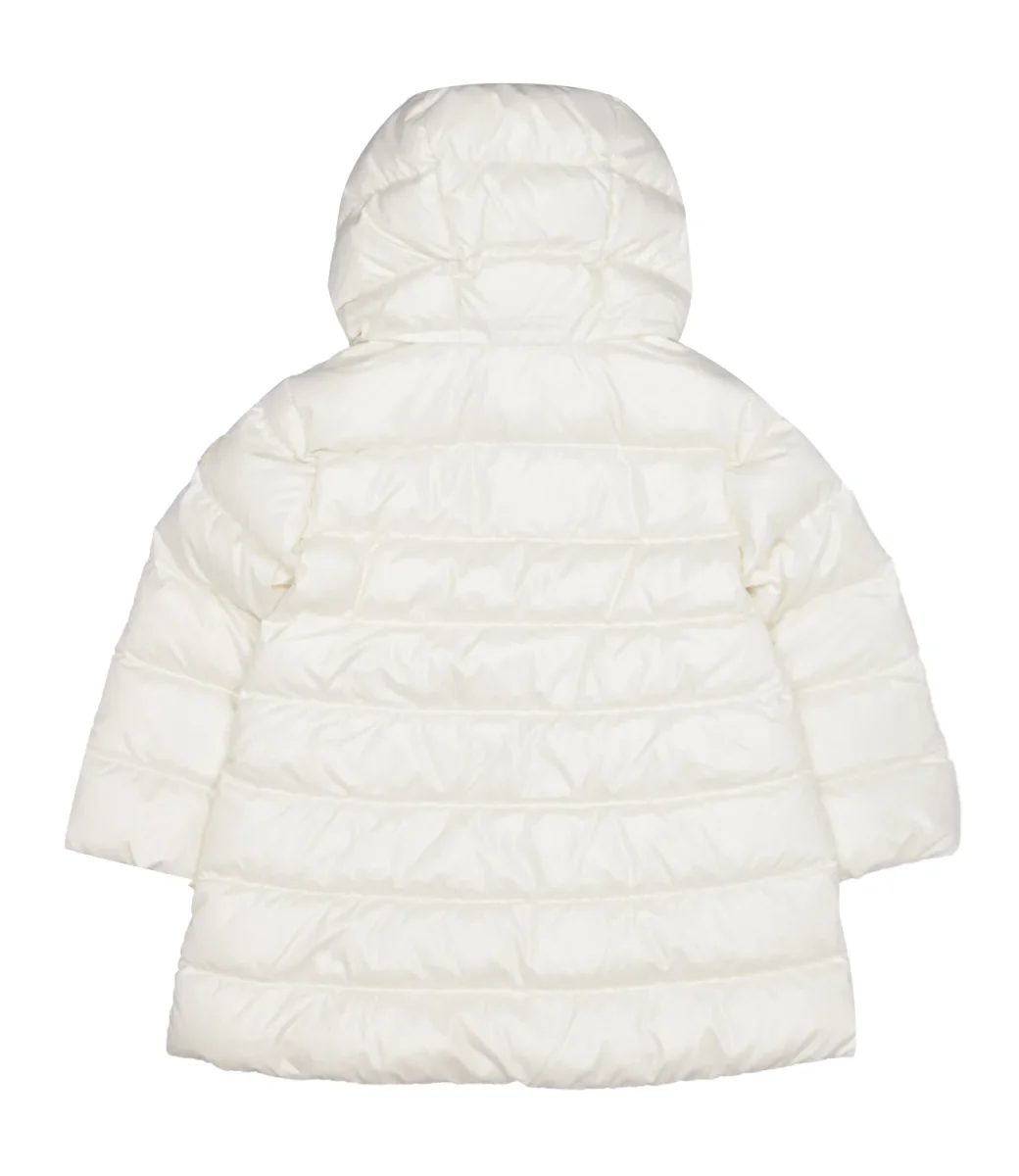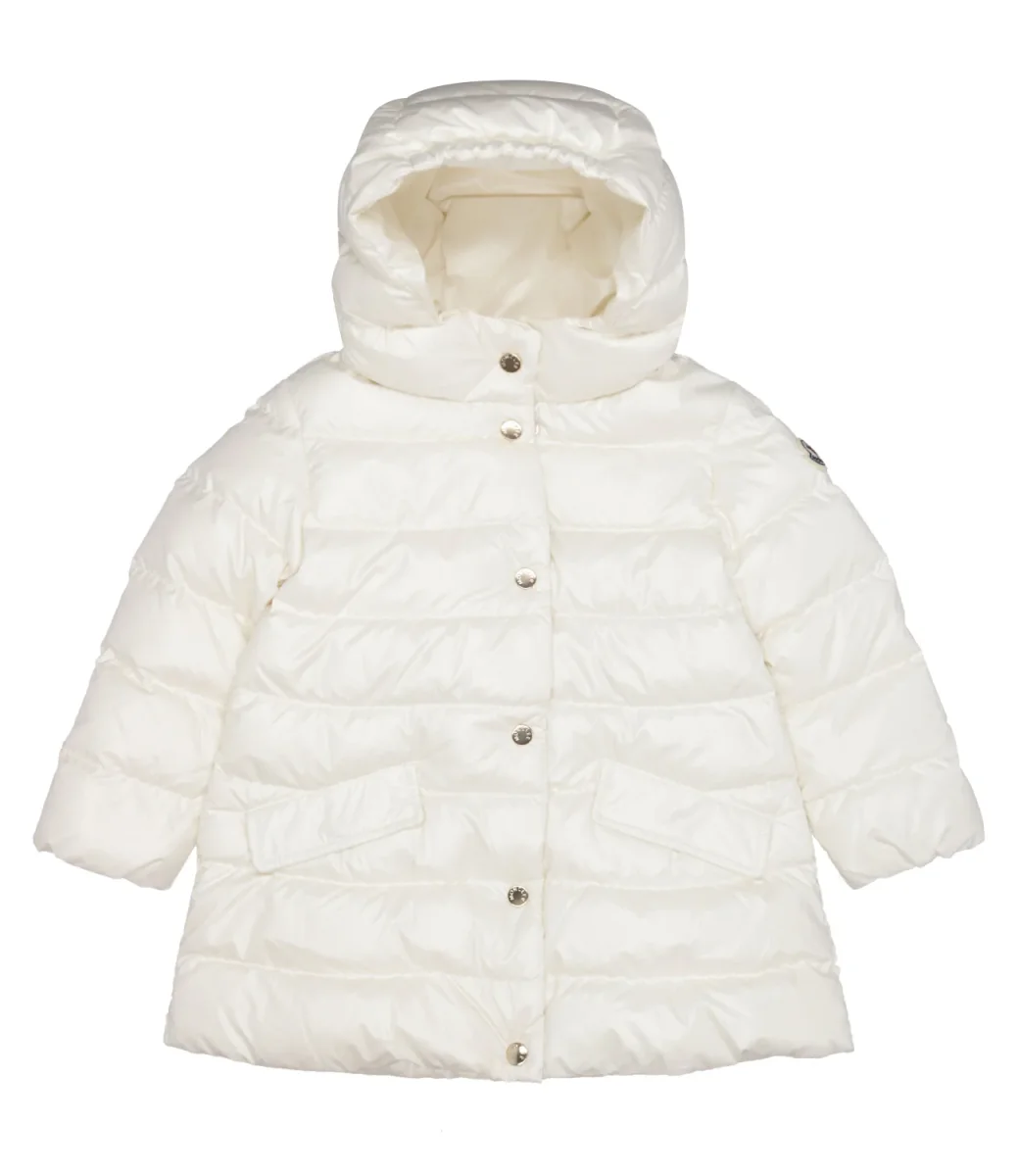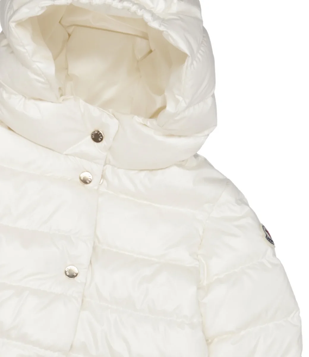Giubbotto Moncler Junior piumino Ibida presenta una silhouette morbida e svasata. Realizzato in nylon con fodera in longue saison, questo piumino con cappuccio garantisce calore durante i primi inverni.