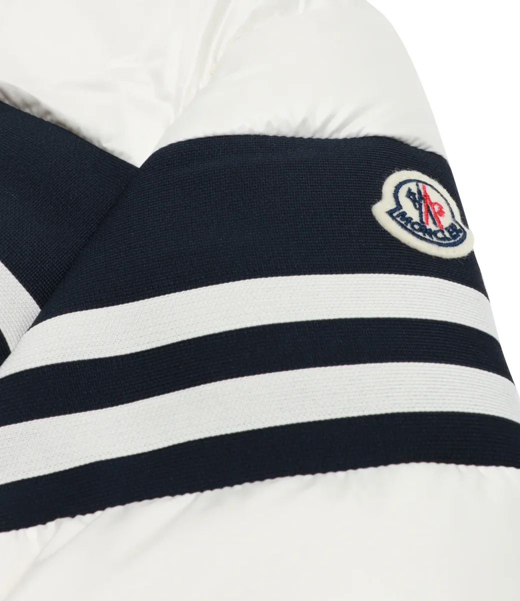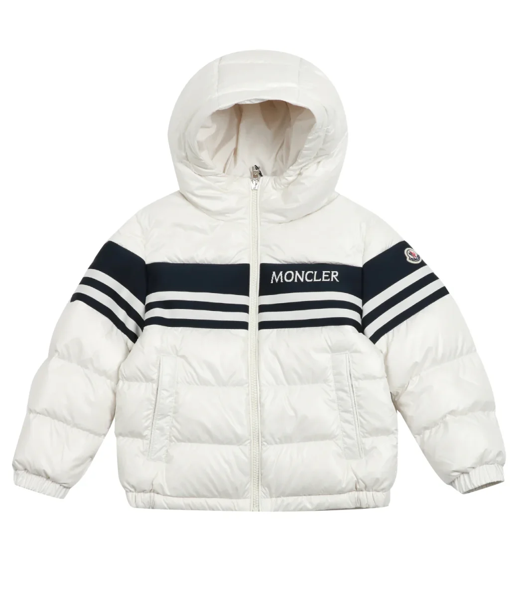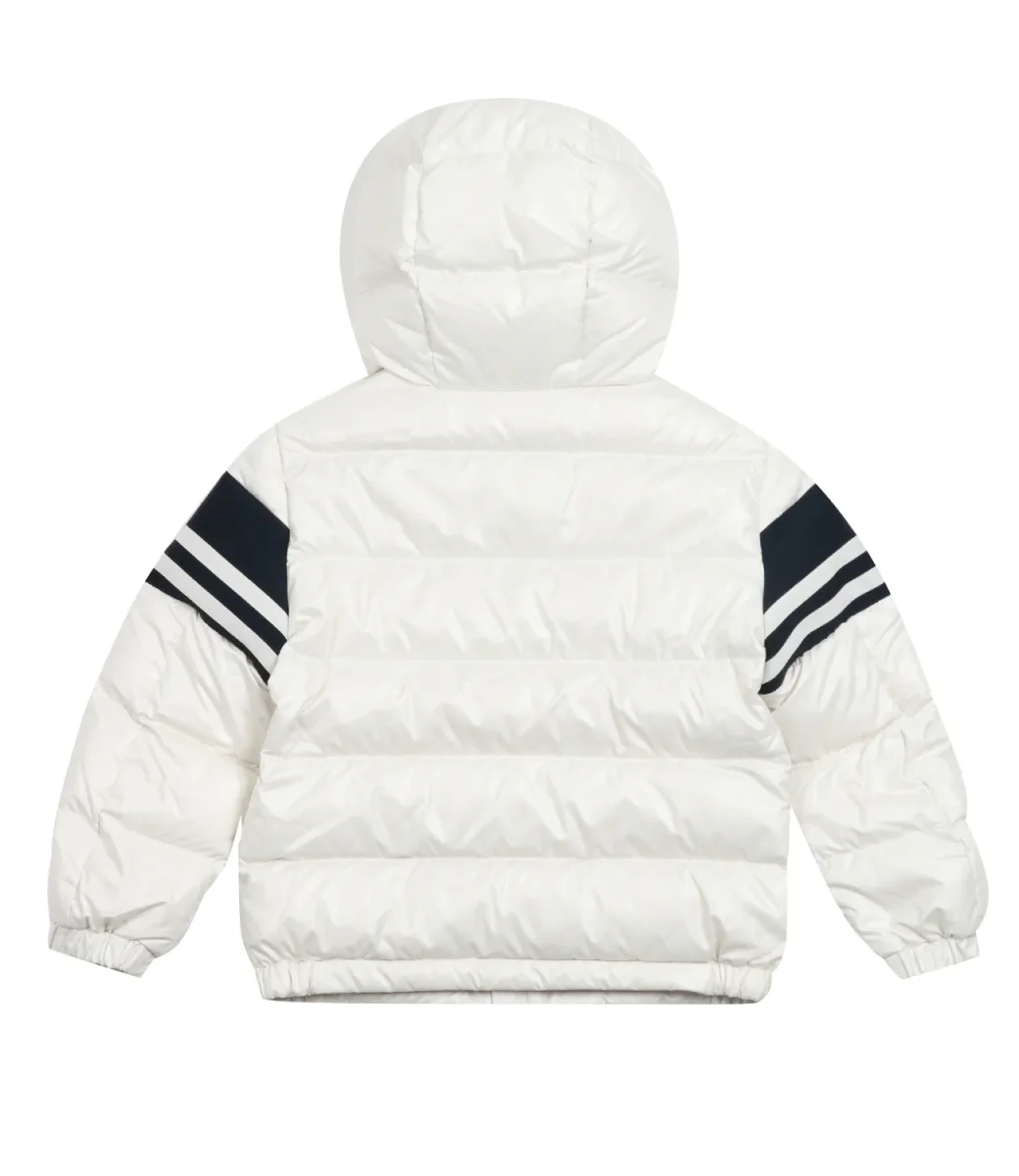 Giubbotto Moncler Junior Mangal è realizzato in nylon panna, un tessuto leggero imbottito e idrorepellente. La fodera in jersey garantisce comfort e il cappuccio amplifica la praticità del capo.
