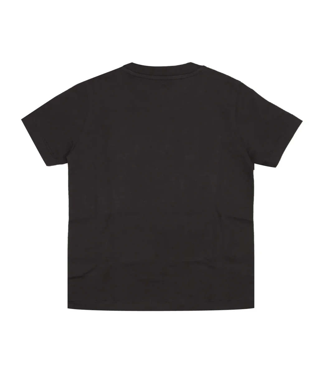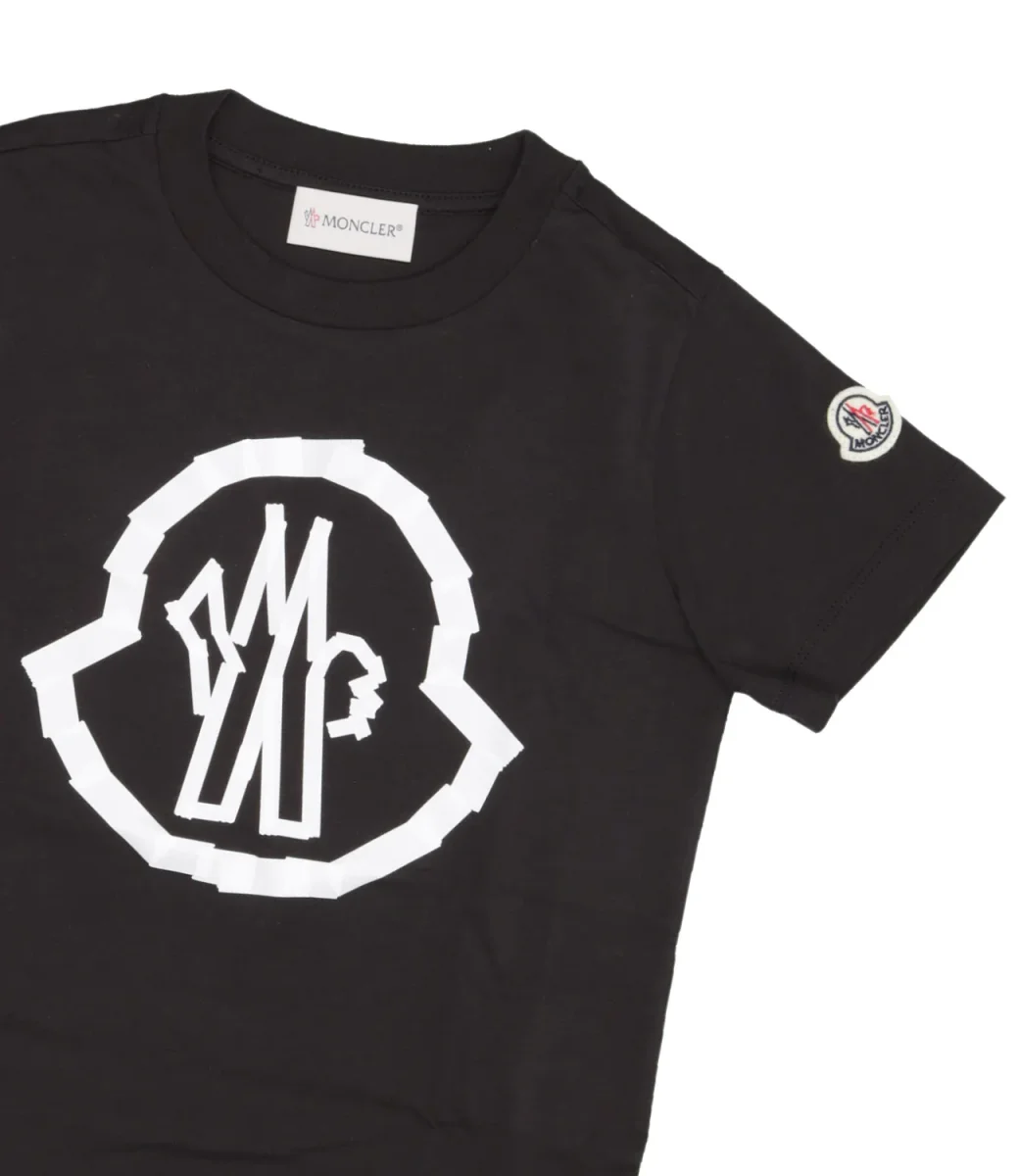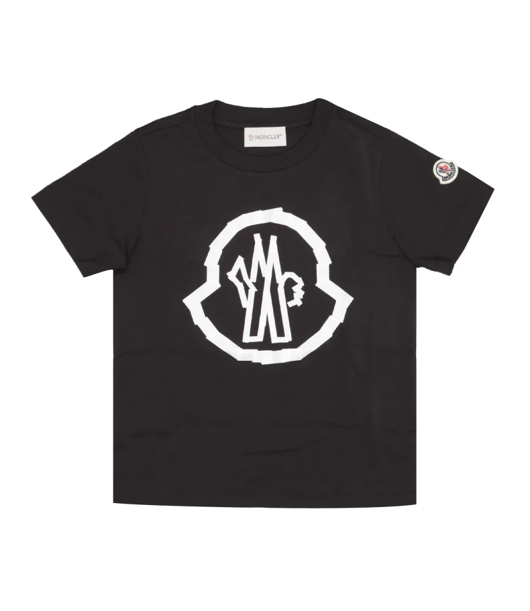 T-Shirt Moncler Junior in cotone a girocollo e maniche corte con logo frontale stampato e logo sulla manica sinistra.