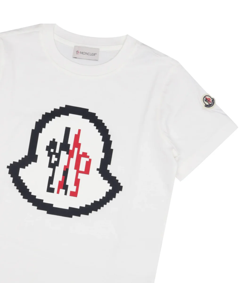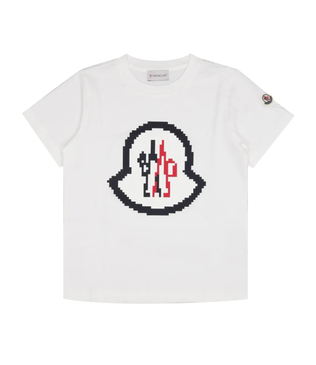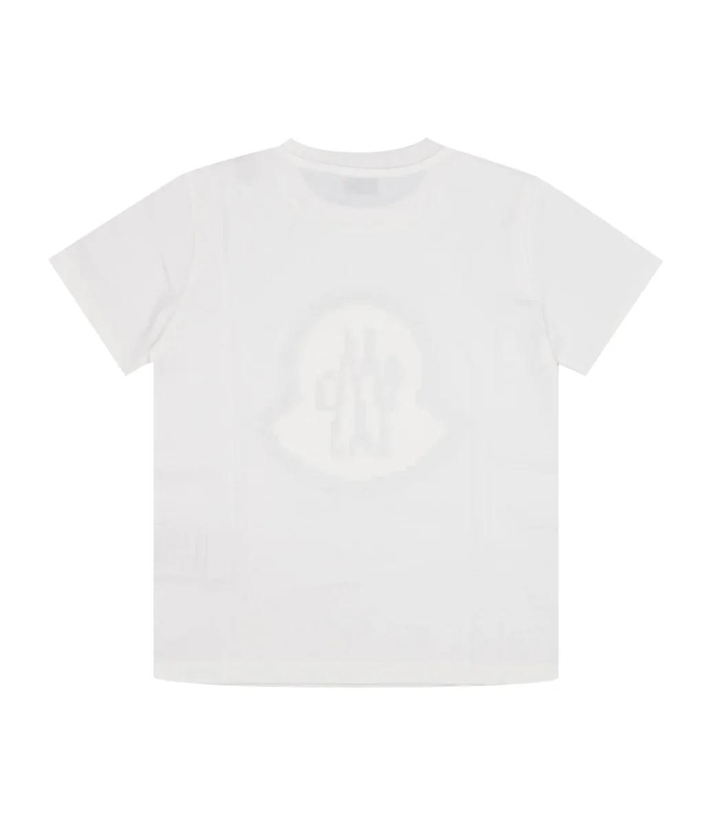 T-Shirt Moncler Junior in cotone, a girocollo e mezze maniche con logo frontale.