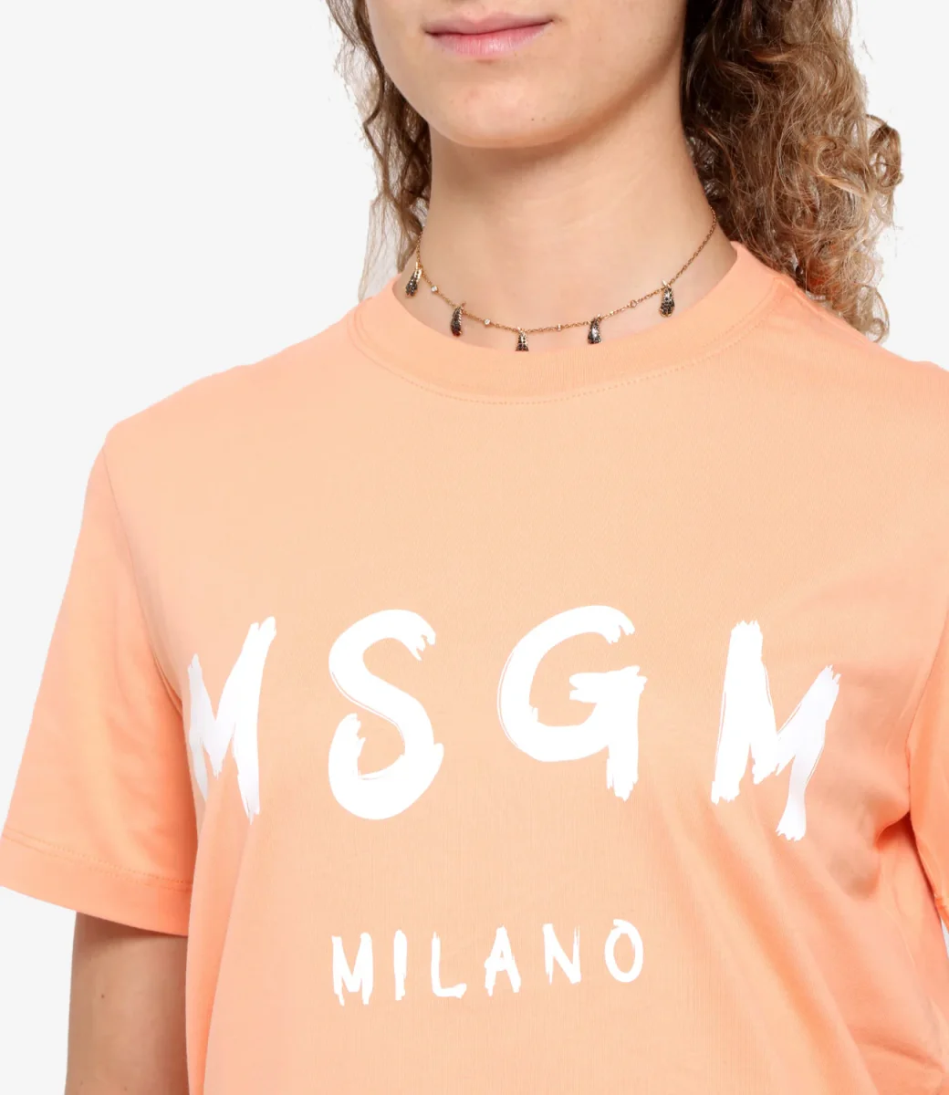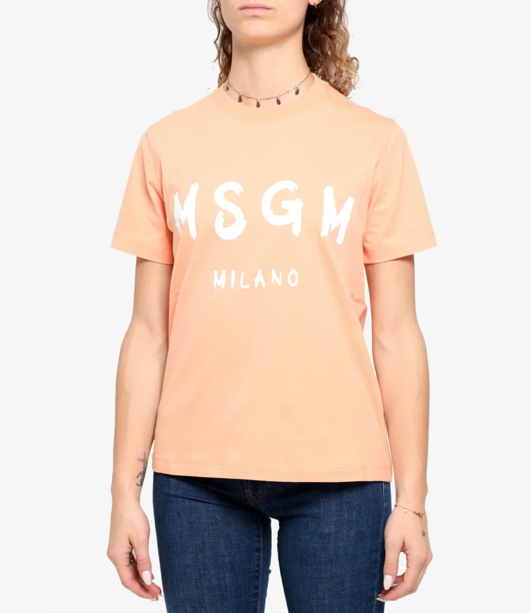 T-shirt di cotone a maniche corte con stampa logo frontale.