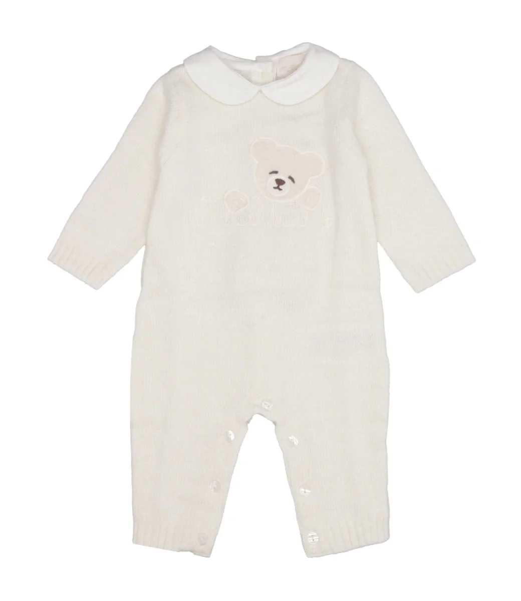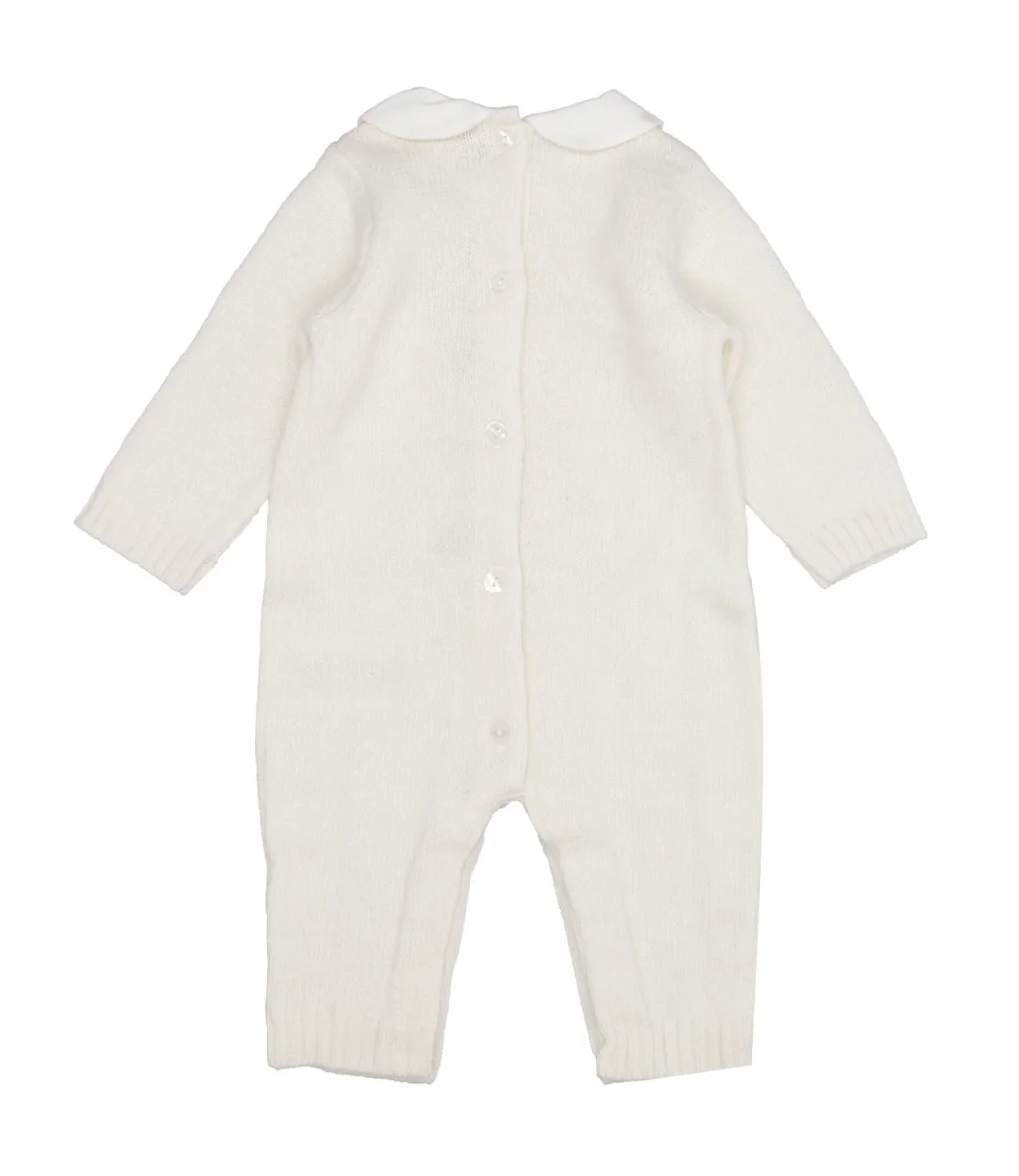 Tutina Nanan in misto lana, colletto club in cotone, chiusura sul retro con bottoni, maniche lunghe con polsini a costine, orsetto e logo ricamati sul davanti, abbottonatura inferiore, che assicurerà una vestibilità comoda e confortevole, fondo con polsini a costine.