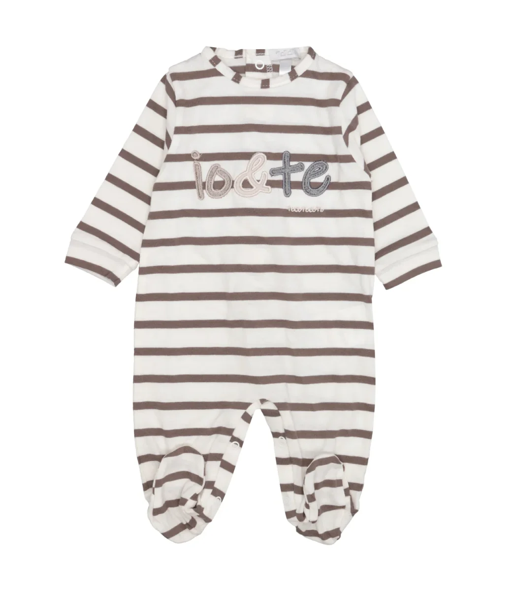Morbida tutina Nanan rigata in cotone impreziosita dalla scritta “io e te”.