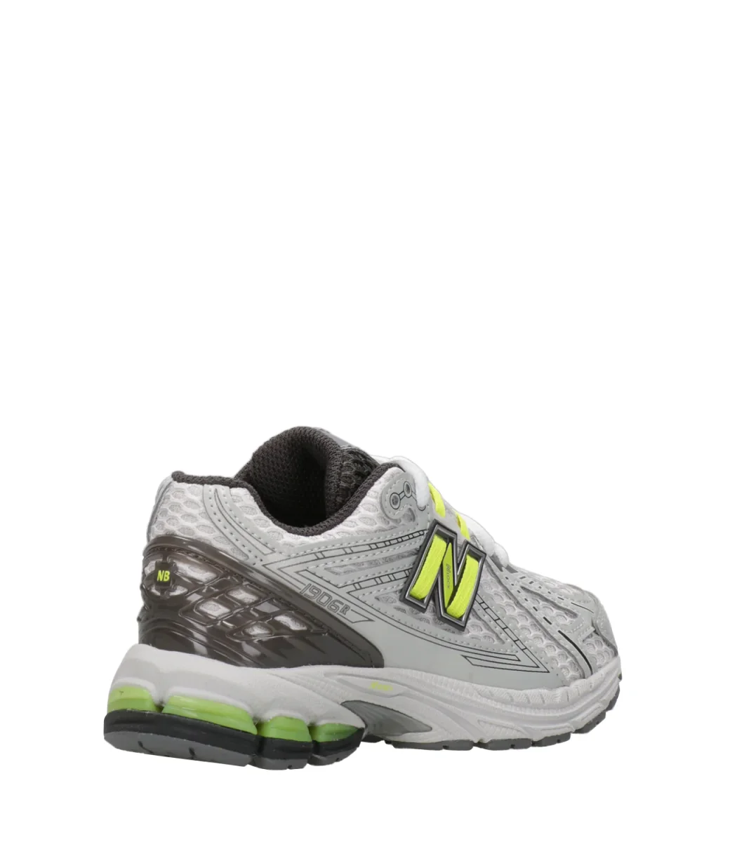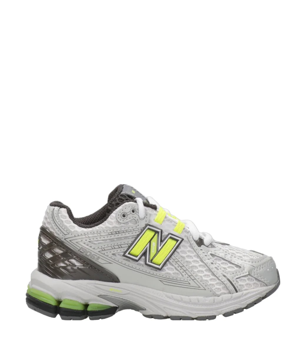 Sneakers New Balance Kids 1906.Tomaia in tessuto mesh con inserti in pelle, linguetta logata, chiusura con velcro per la calzata primi passi. Suola in gomma. Logo sui laterali.