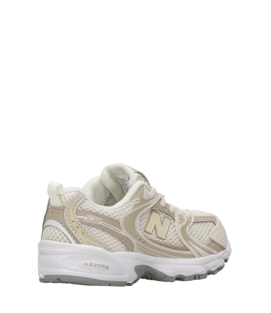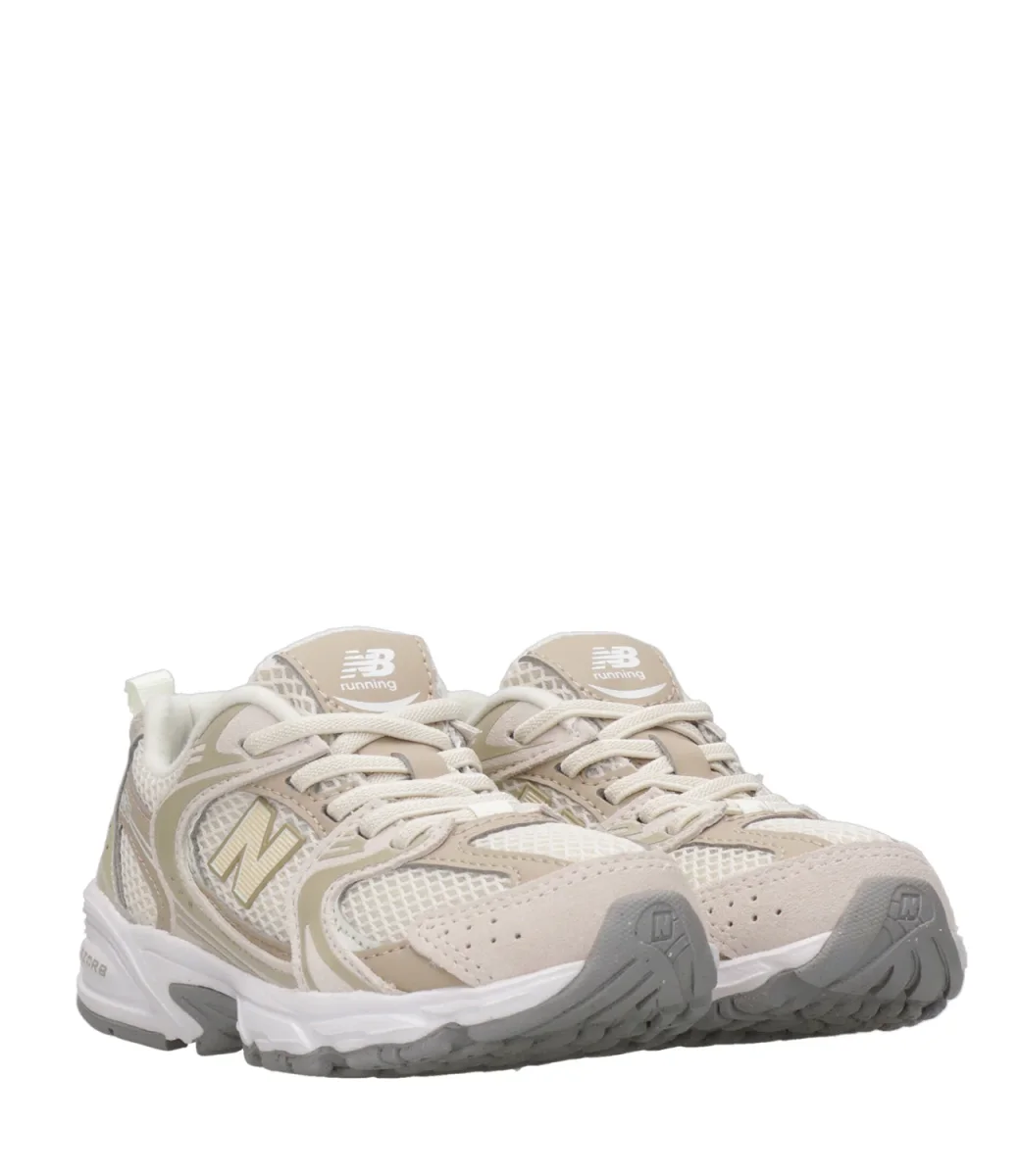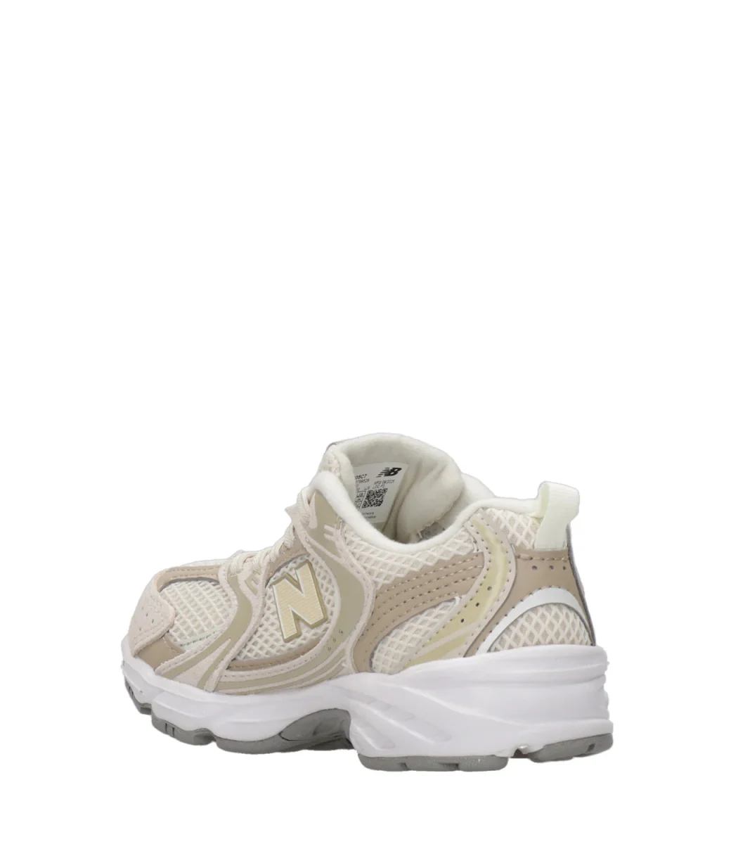Sneakers New Balance Kids 530.Tomaia in tessuto mesh con inserti in pelle, linguetta logata, chiusura regolabile con lacci in tessuto intrecciato o chiusura con velcro per la calzata primi passi. Suola in gomma. Logo sui laterali.
