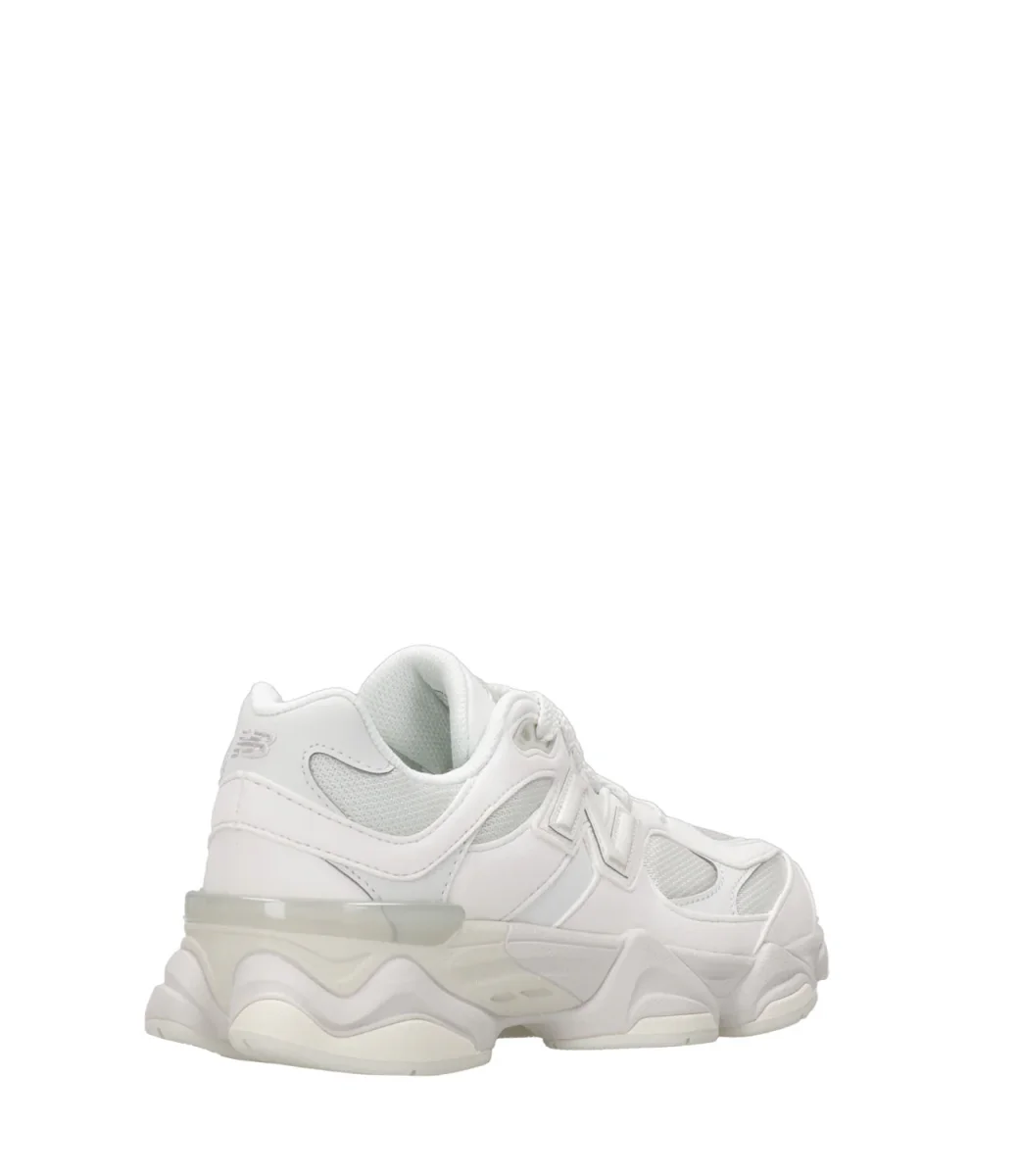 Sneakers New Balance Kids modello 9060, design innovativo della classica serie 99X, ispirata all’estetica dell’era Y2K, con barre di oscillazione ampliate e utilizzate su tutta la tomaia, linee ondulate e intersuola scanalata e scolpita, ammortizzazione ABZORB e SBS