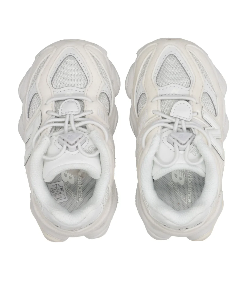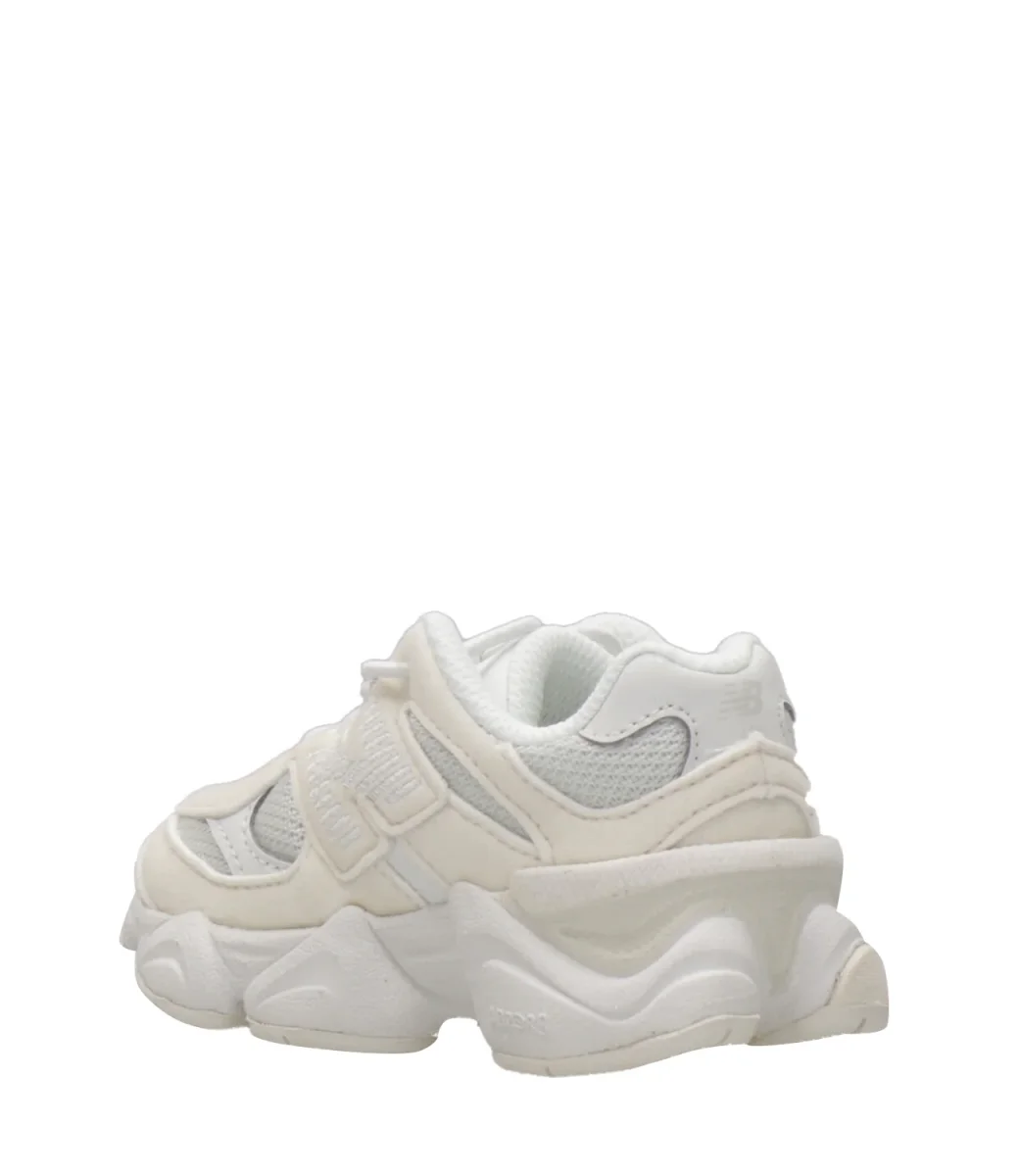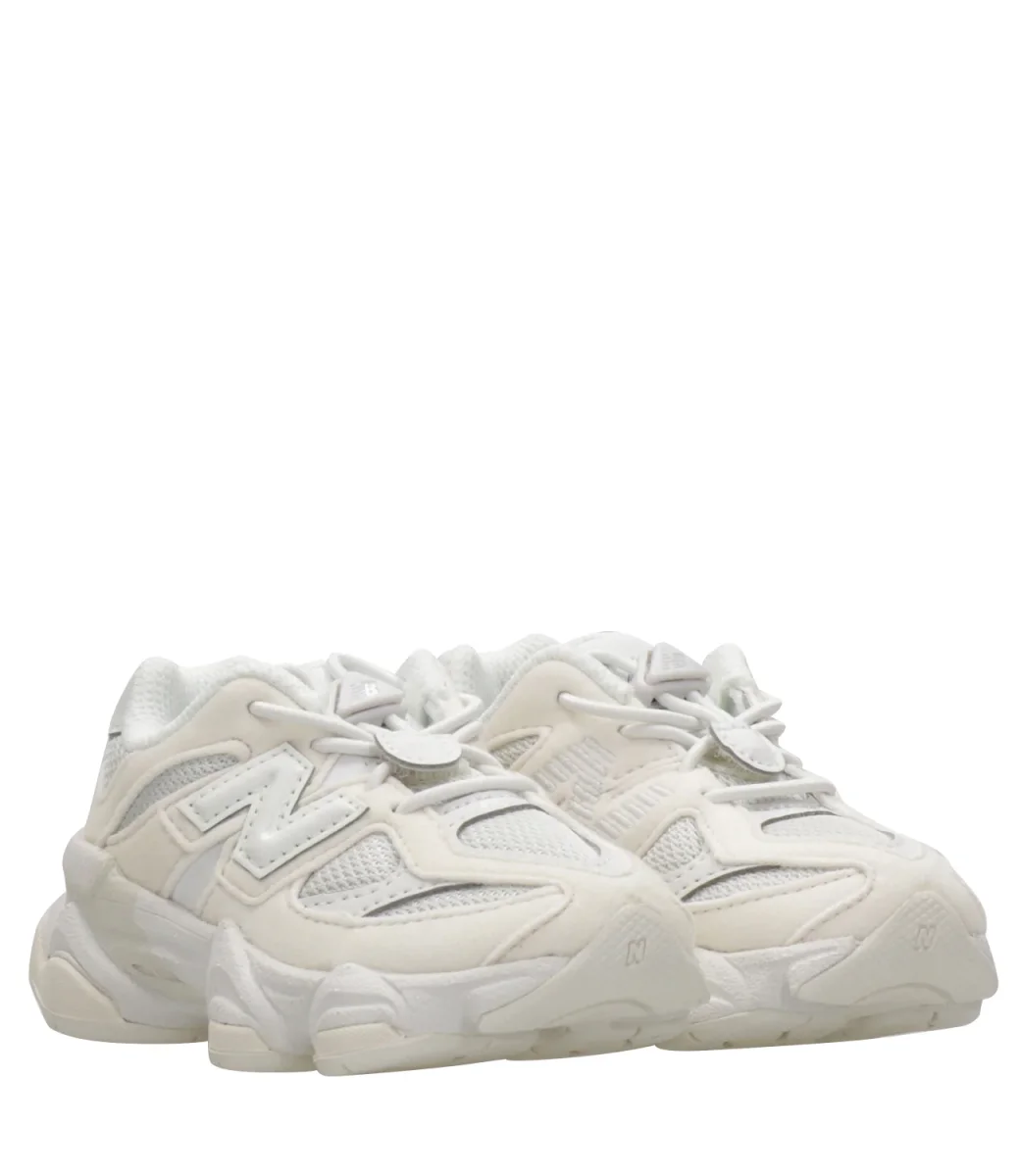 Sneakers New Balance Kids modello 9060, in nylon, stile raffinato e design innovativo della classica serie 99X, ispirata all’estetica dell’era Y2K, con barre di oscillazione ampliate e utilizzate su tutta la tomaia, linee ondulate e intersuola scanalata e scolpita, ammortizzazione ABZORB e SBS
