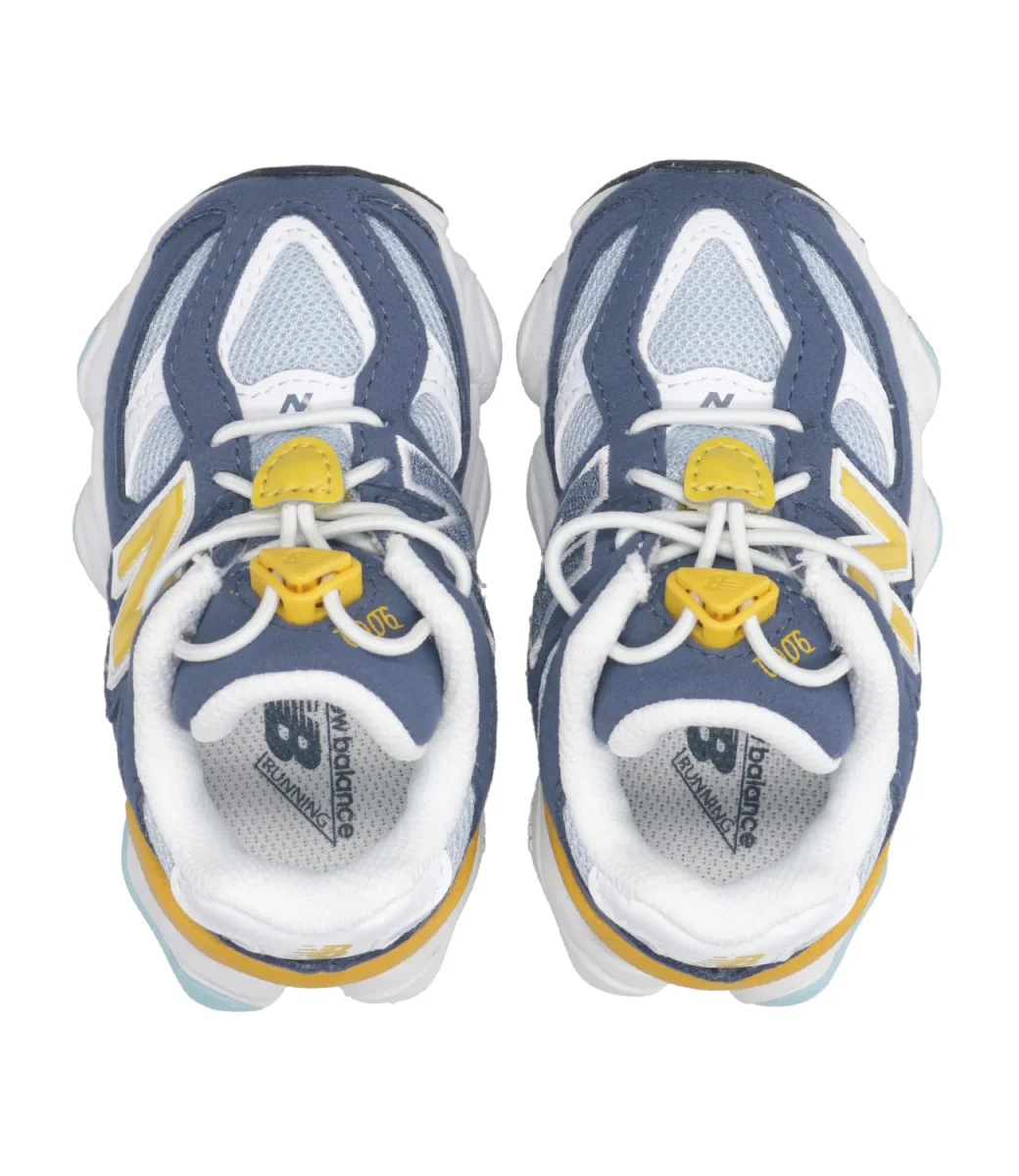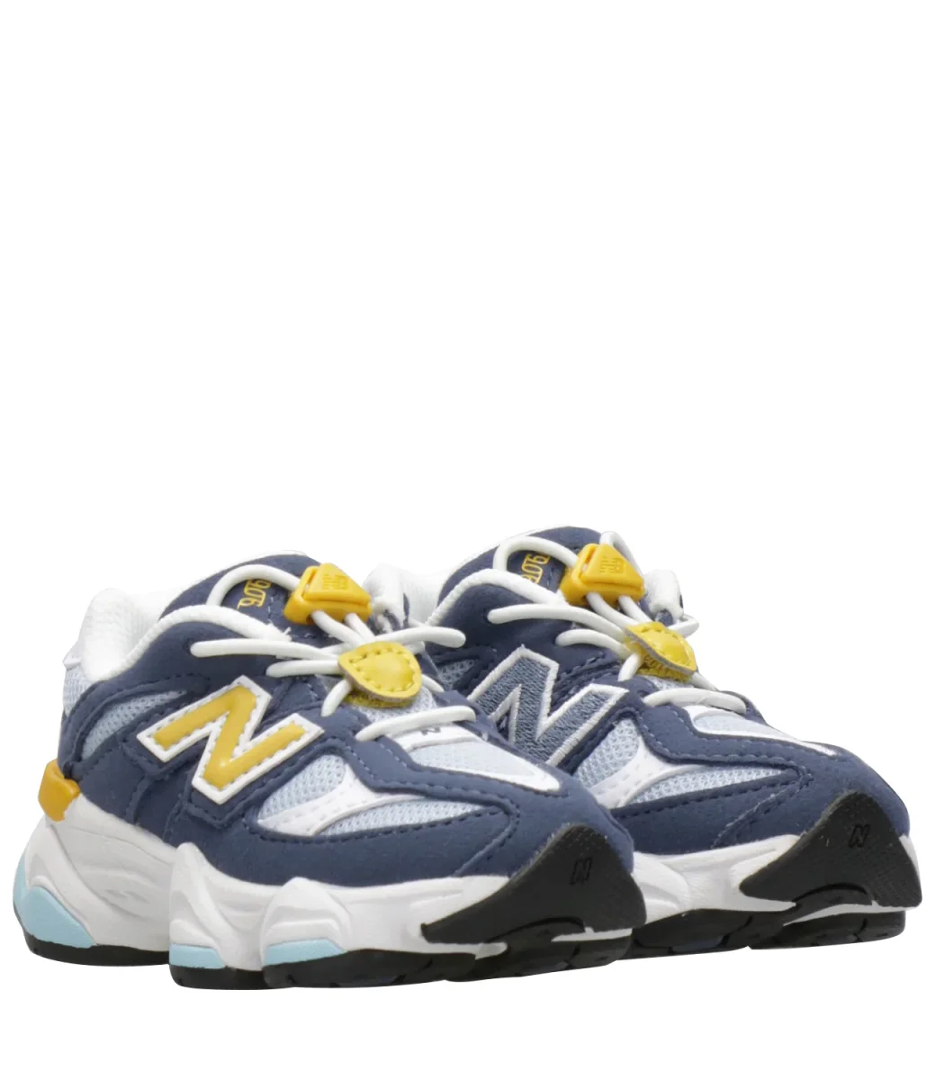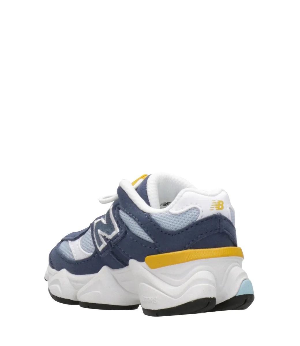 Sneakers New Balance Kids modello 9060, design innovativo della classica serie 99X, ispirata all’estetica visibilmente tecnologica e orgogliosamente futuristica dell’era Y2K, con barre di oscillazione ampliate e utilizzate su tutta la tomaia , per un senso di movimento visibile, mentre le linee ondulate e le proporzioni scalate su intersuola scolpita pongono un’enfasi esagerata sulle note piattaforme di ammortizzazione ABZORB e SBS.