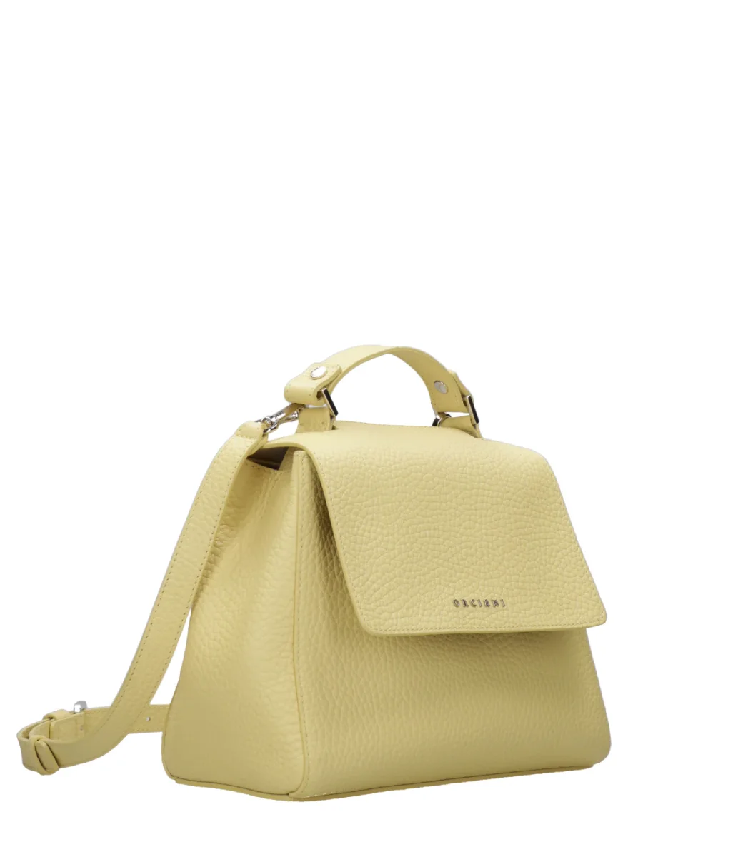 Borsa a spalla Orciani Sveva S in pelle martellata, modello da indossare a mano o con la tracolla regolabile con fibbia e rimovibile, manico fisso in pelle sul bordo superiore, fessura a scomparsa per accedere all’interno della borsa senza aprirne la patta, tasche interne, di cui una con zip. Chiusura con patta e magnete, logo lettering in finitura palladio.