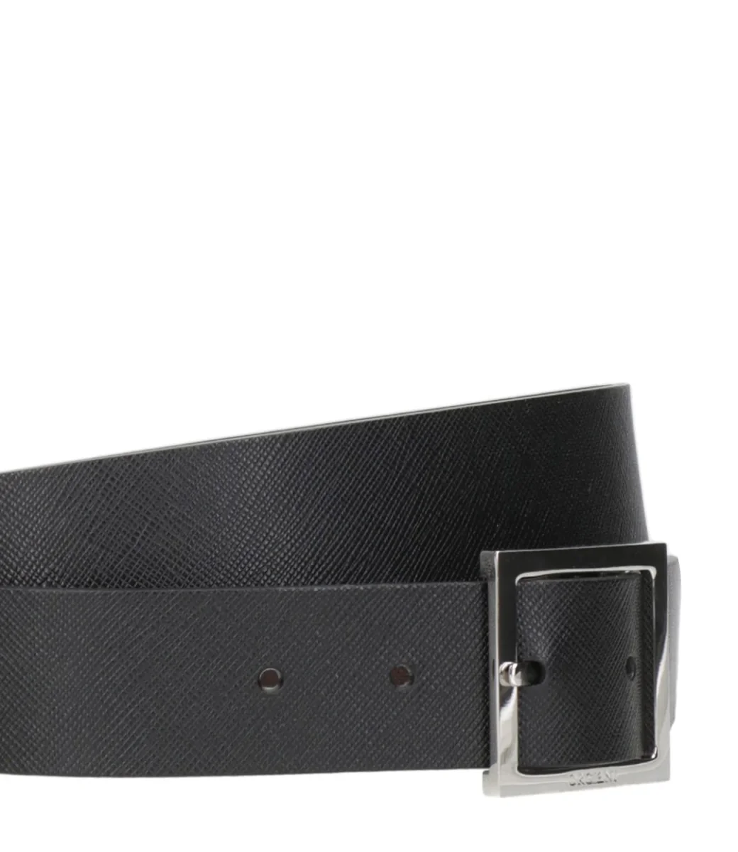 Cinta Orciani realizzata in pelle saffiano, con fibbia in metallo argentato, accessori da poter abbinare a qualsiasi look.