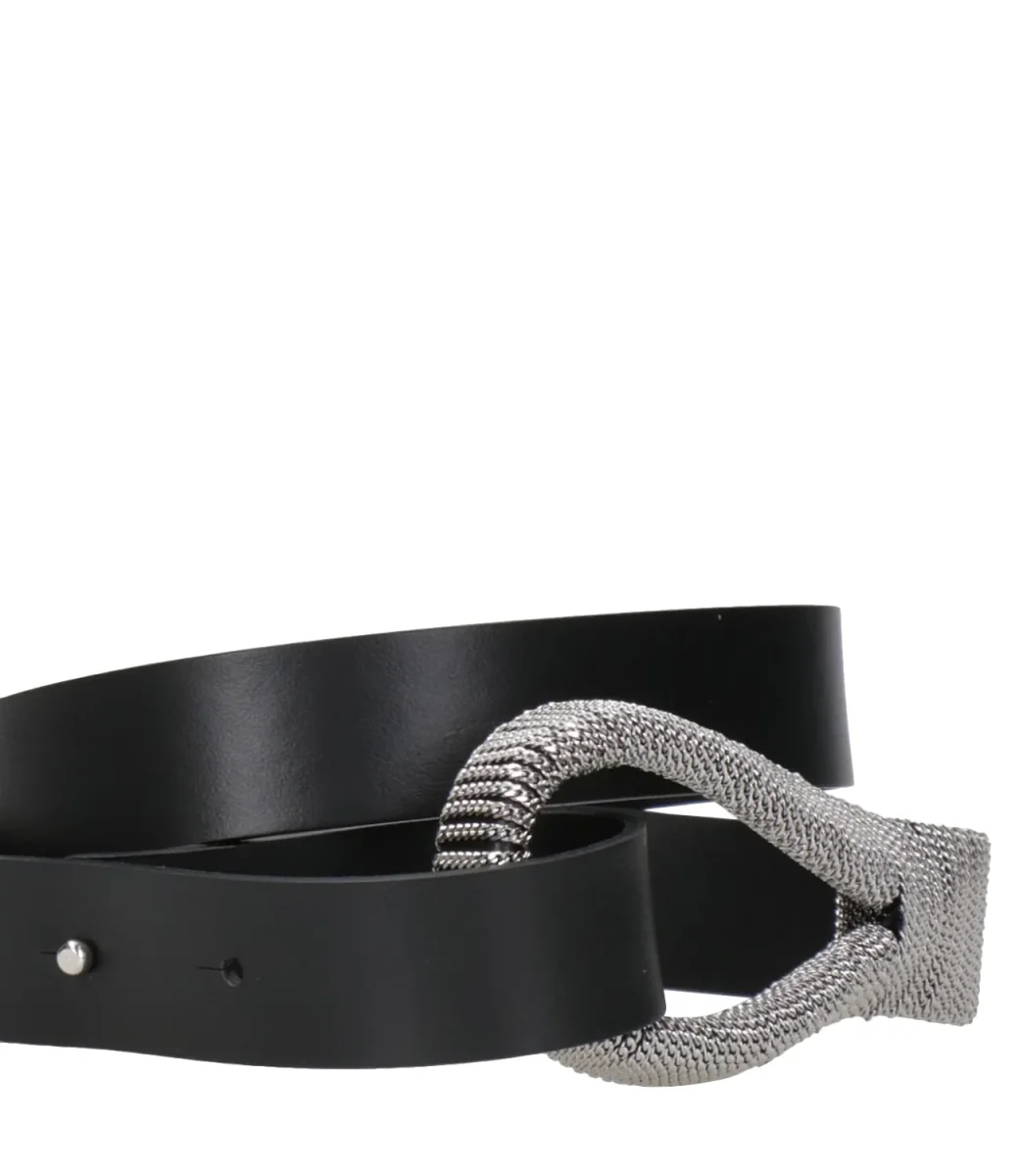 Cinta Orciani in pelle liscia con prezioso decoro creato con la chiusura ad asola realizzata in micro catena diamantata.