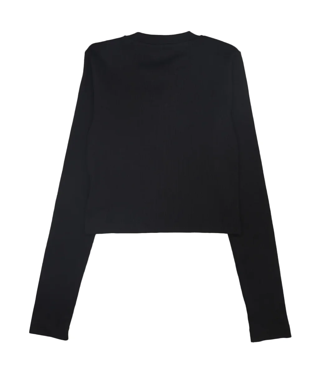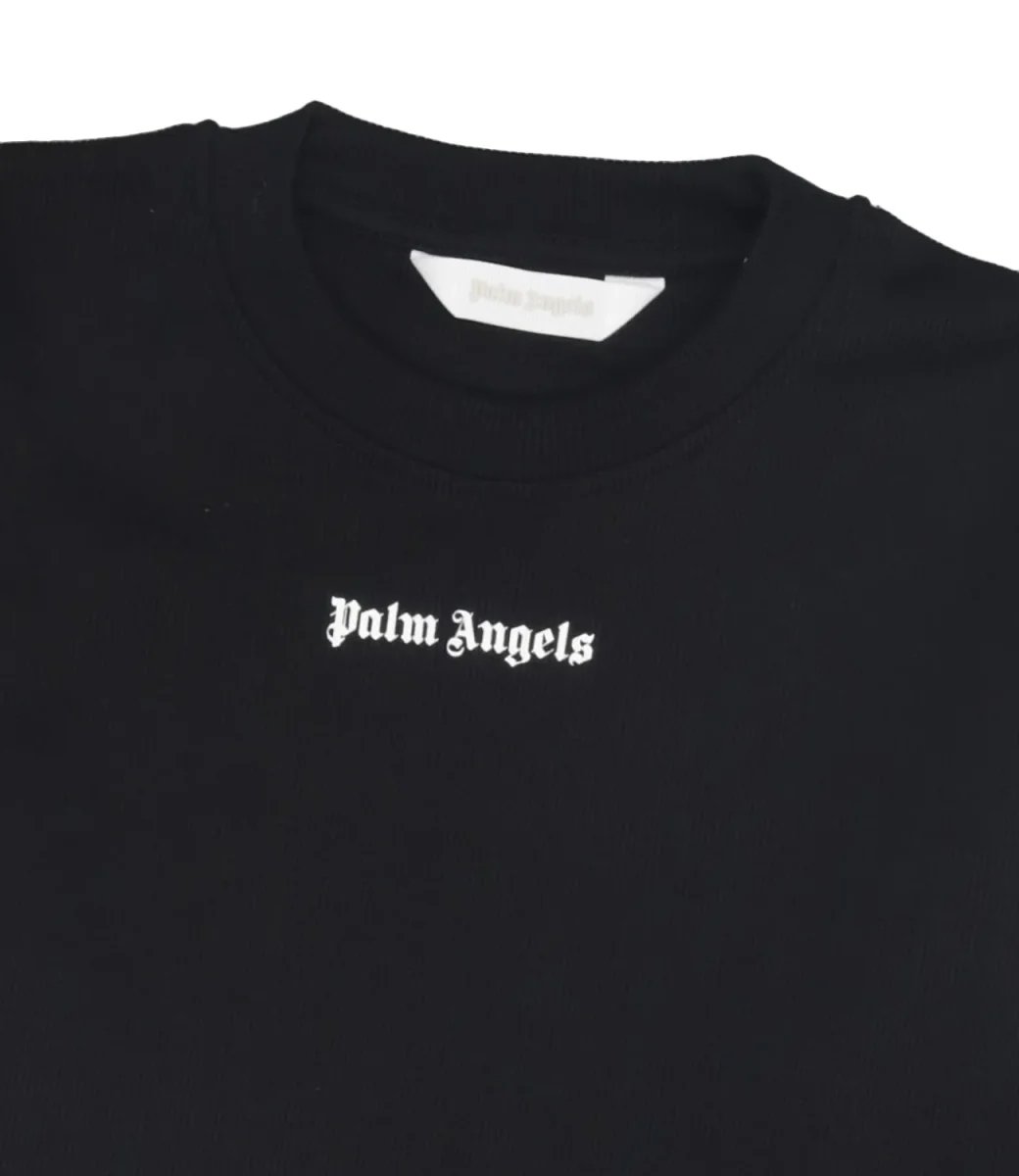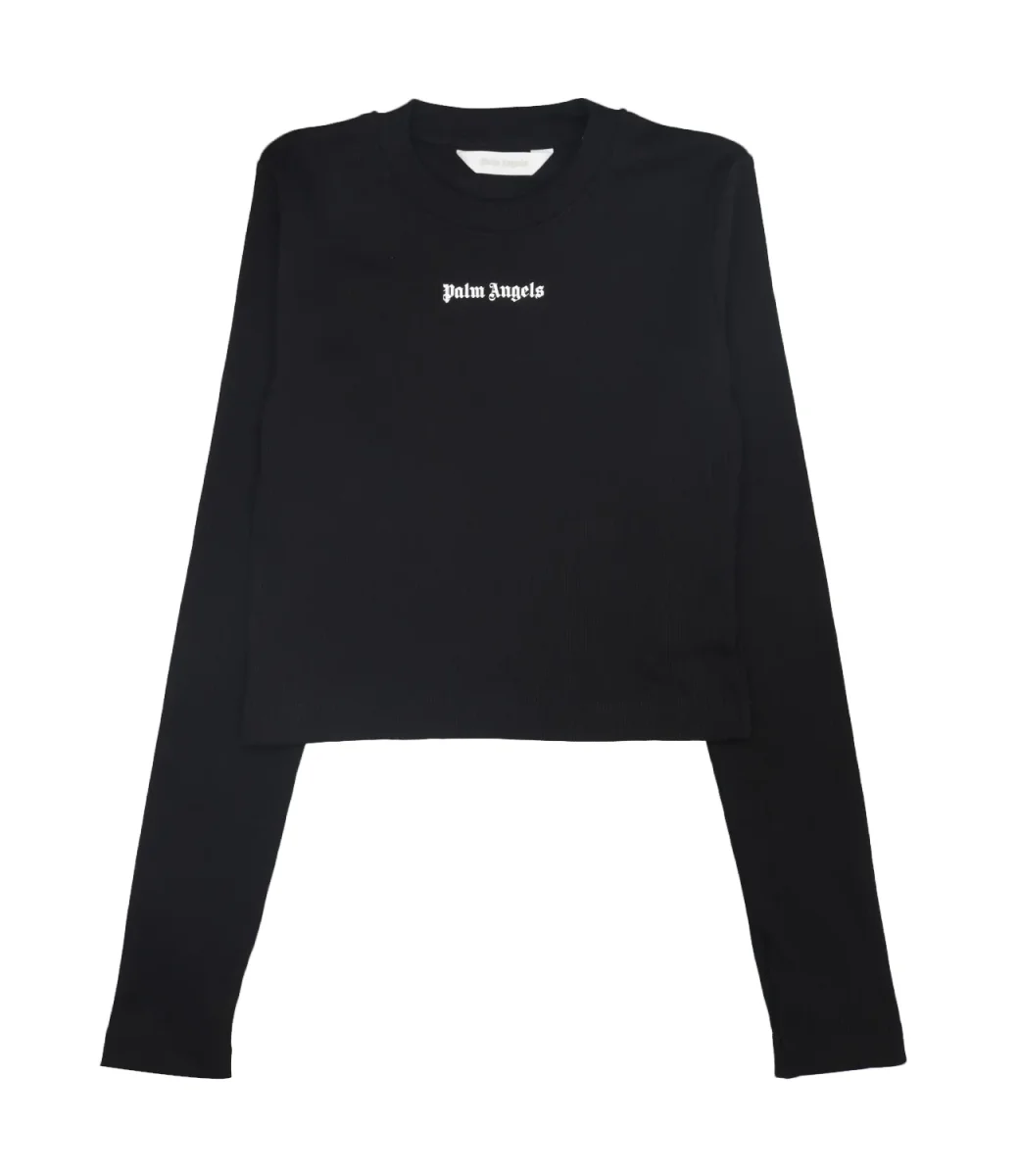 T-Shirt Palm Angels Kids Logo Rib Baby in misto cotone, maniche lunghe in costina, scollo rotondo a coste e logo ricamato frontale. Vestibilità strutturata e confortevole, estetica streetwear dal tocco raffinato.