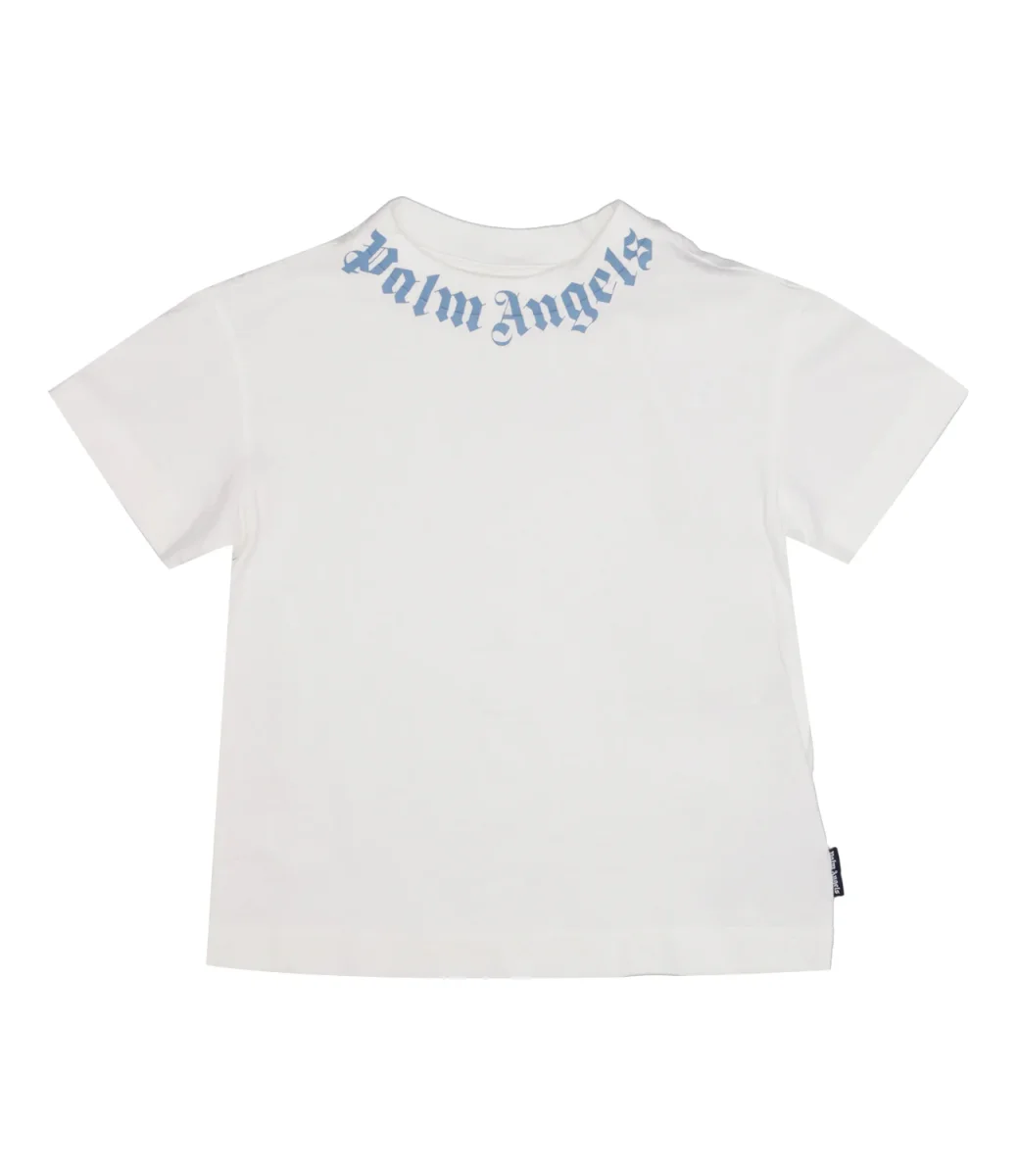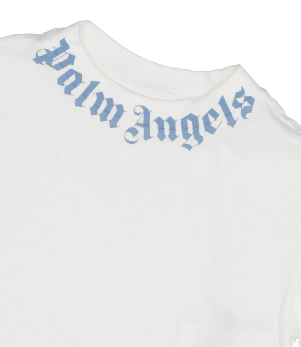 T-Shirt Palm Angels Kids Neck Logo in misto cotone. Linee pulite e stile urbano tipico del brand, adatta a completare look quotidiani con un tocco contemporaneo.