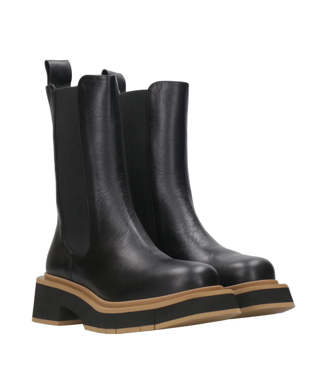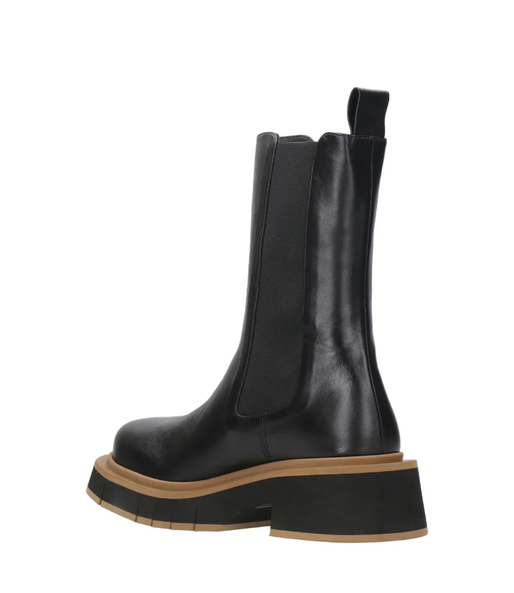 Stivale Paloma Barceló in pelle , chiusura con zip sul lato interno. Forma tonda e fondo dal distintivo disegno di un para di gran carattere, altezza tacco cm 7.5 plat anteriore cm 4.7. Utilizzabile non solo sotto pantaloni ma anche sotto vestiti e gonnelloni a sdrammatizzare un look romantico.