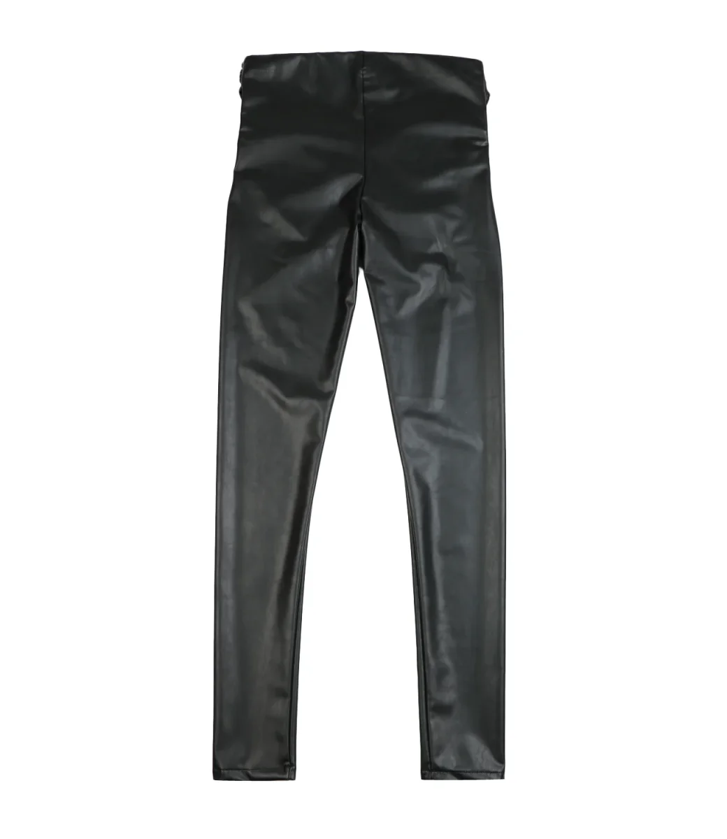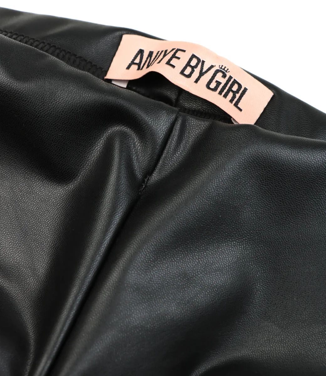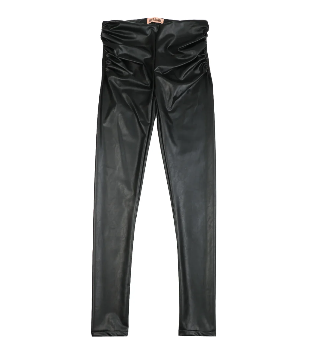 Pantalone Aniye By Girl in ecopelle nera, arricciatura sui fianchi ed elastico in vita.