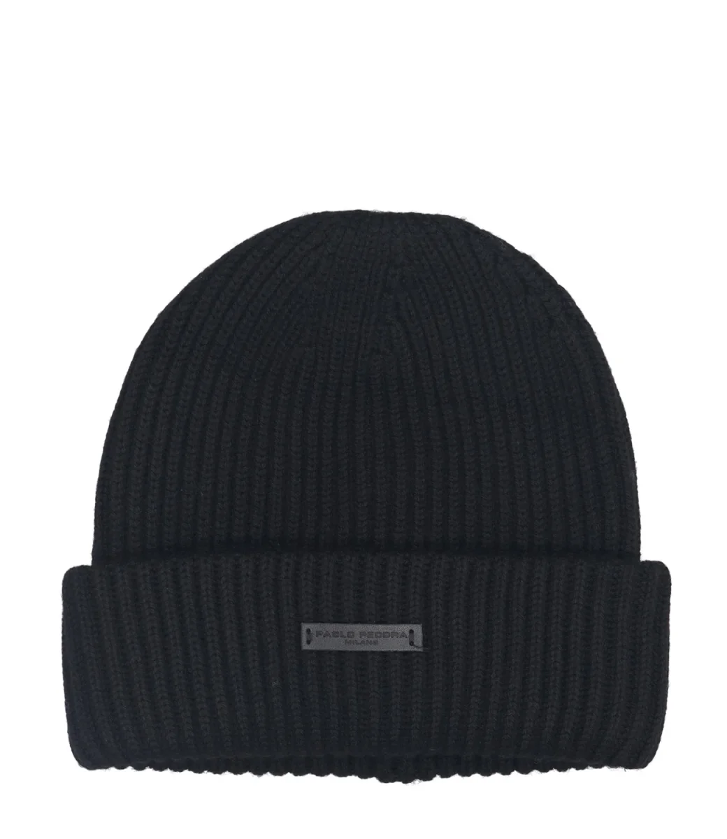 Cappello Paolo Pecora in lana con lavorazione in maglia a coste, con risvolto che stabilizza l’orlo e aumenta la copertura della fronte.