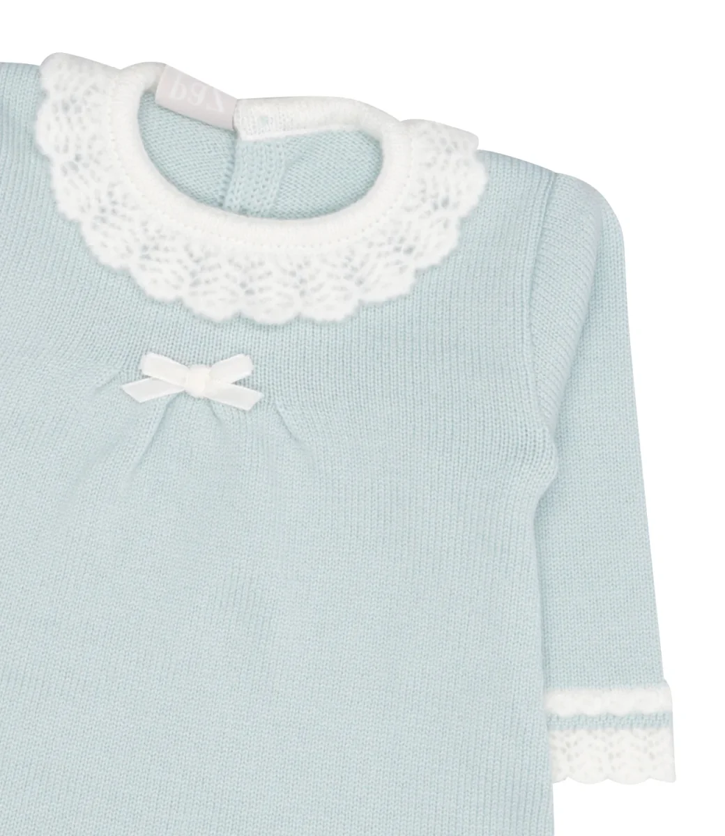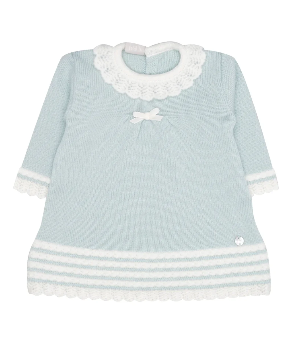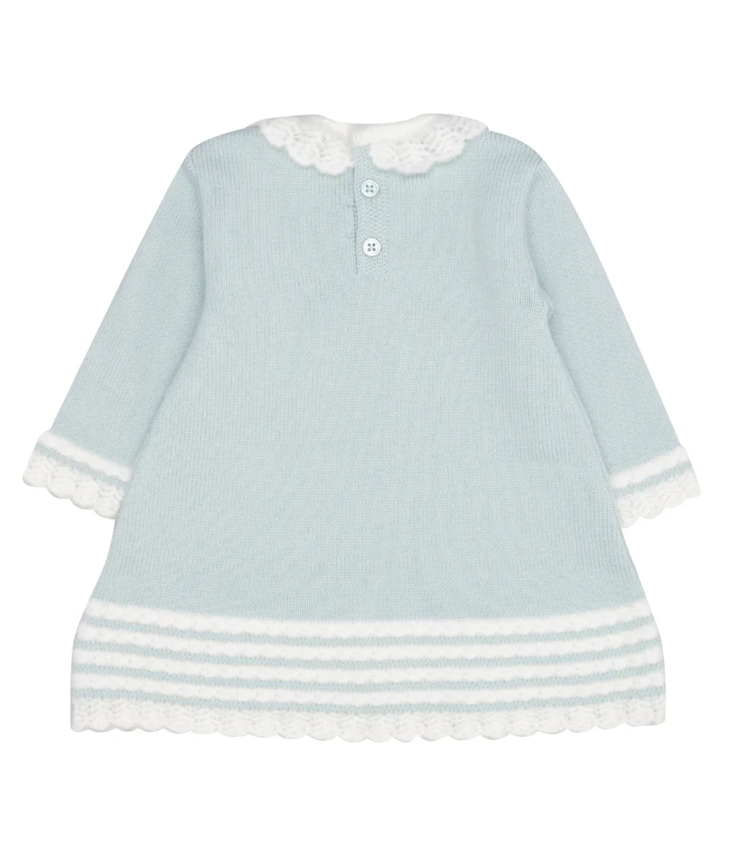 Abito Paz Rodriguez Ruisenor in lana, lavorato con motivo a maglia, colletto volant in maglia di lana ricamata, chiusura con bottoni sul retro, maniche lunghe con polsini decorati con un ricamo, fondo decorato con ricamo e logo applicato sul laterale.
