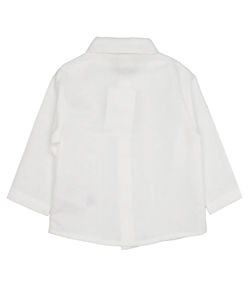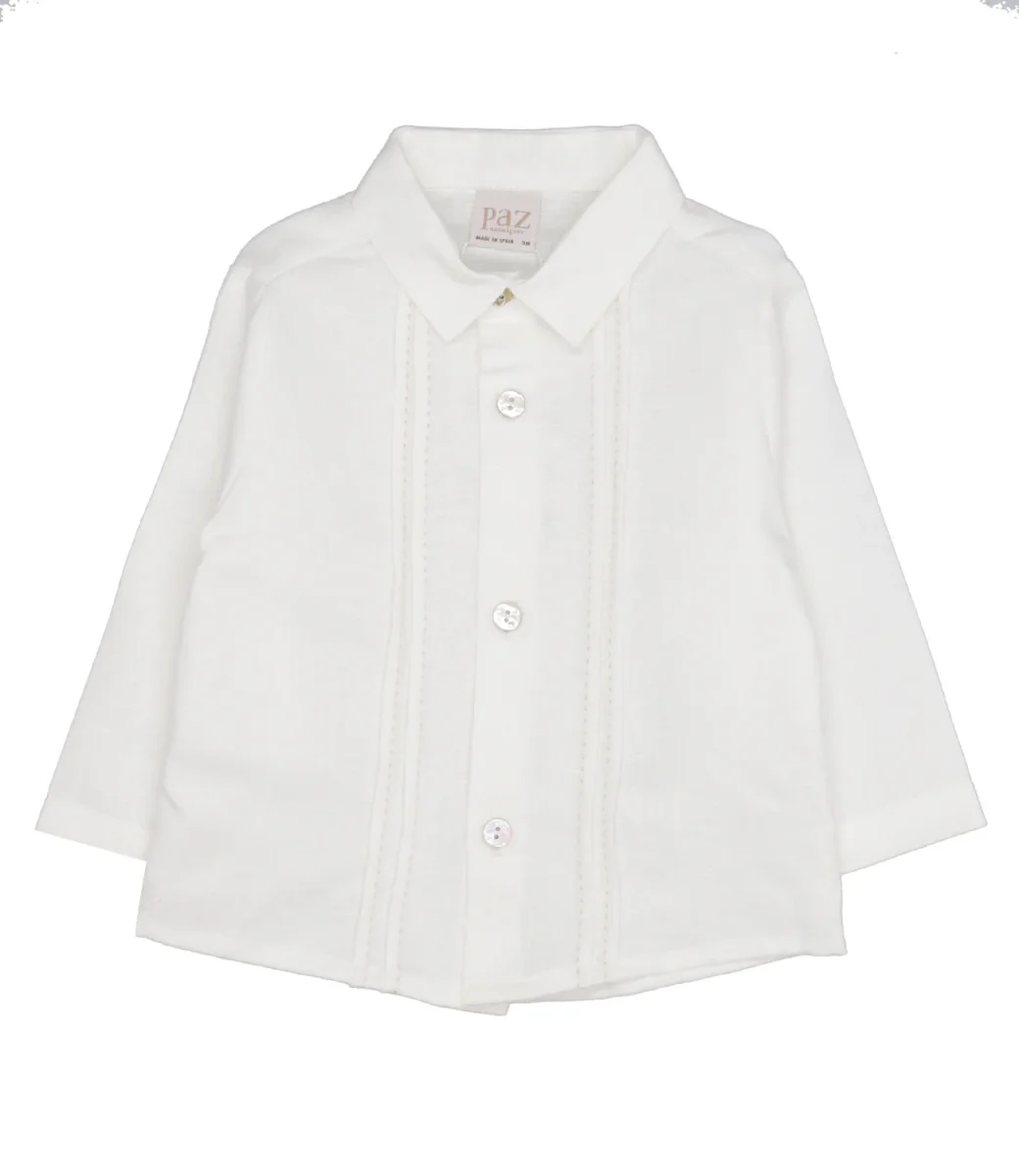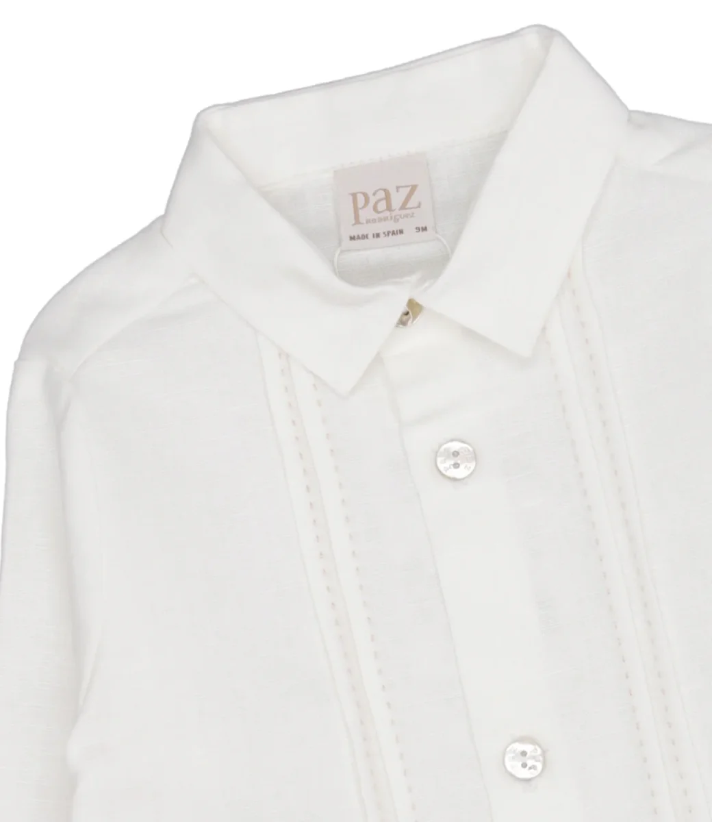 Camicia Paz Rodriguez in misto cotone e lino, con colletto classico a punta, dettaglio sul davanti con pieghe. Maniche lunghe, chiusura con bottoni in tono.