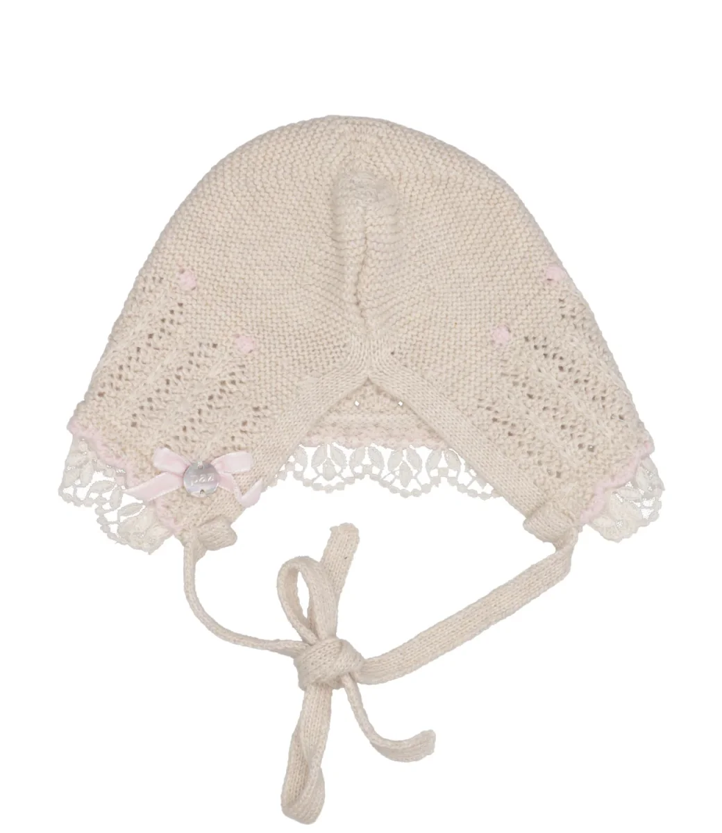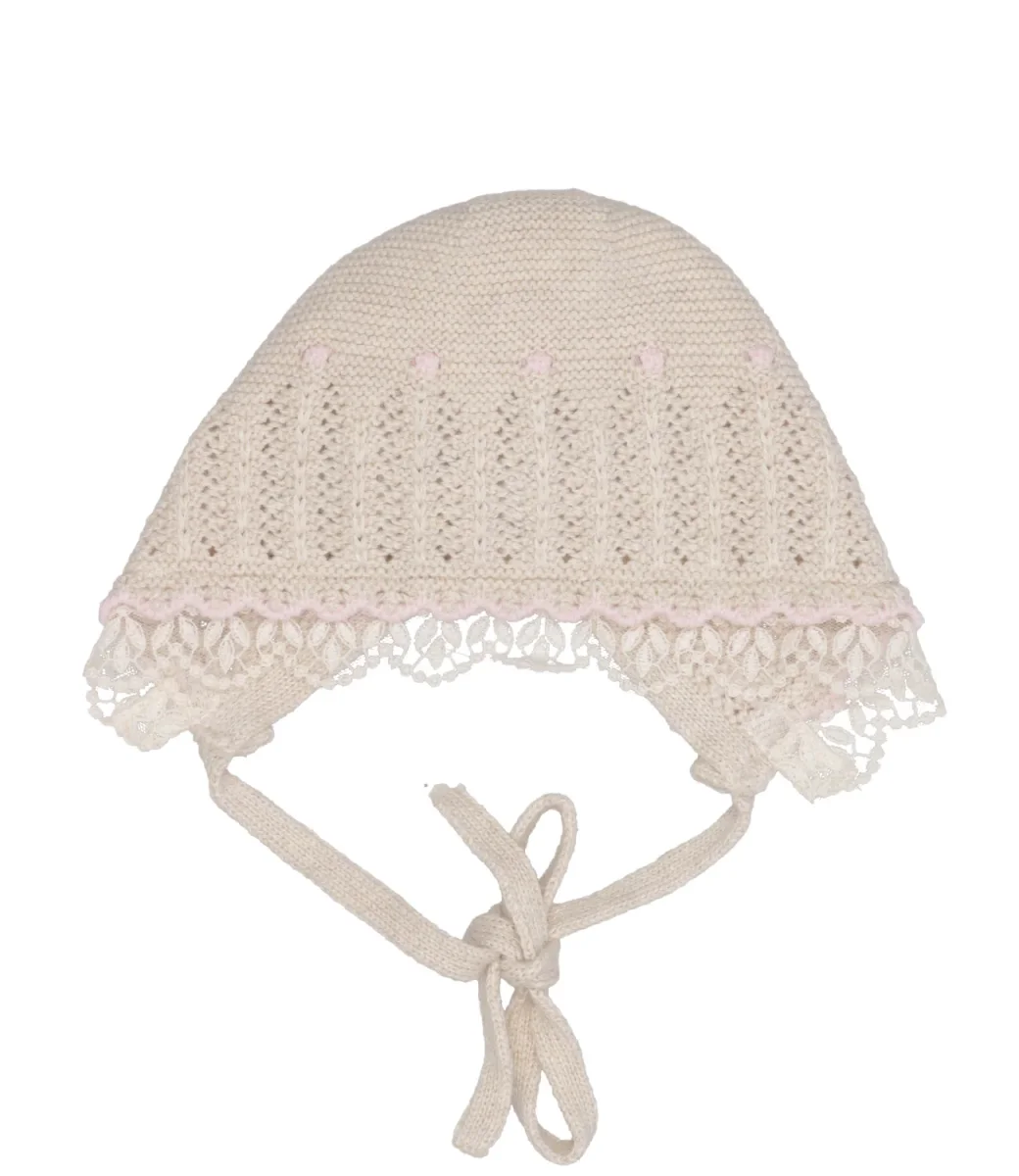 Cappello Paz Rodriguez Alegria in cotone e cashmere con motivo a maglia ricamato, inserto in merletto, chiusura regolabile con laccetti in maglia