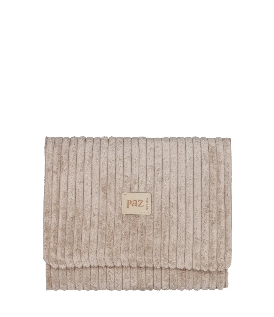 Fasciatoio Paz Rodriguez accessorio pieghevole imbottito con esterno in velluto a coste larghe. Interno impermeabile in nylon facile nella manutensione. Chiusura con magnete.
