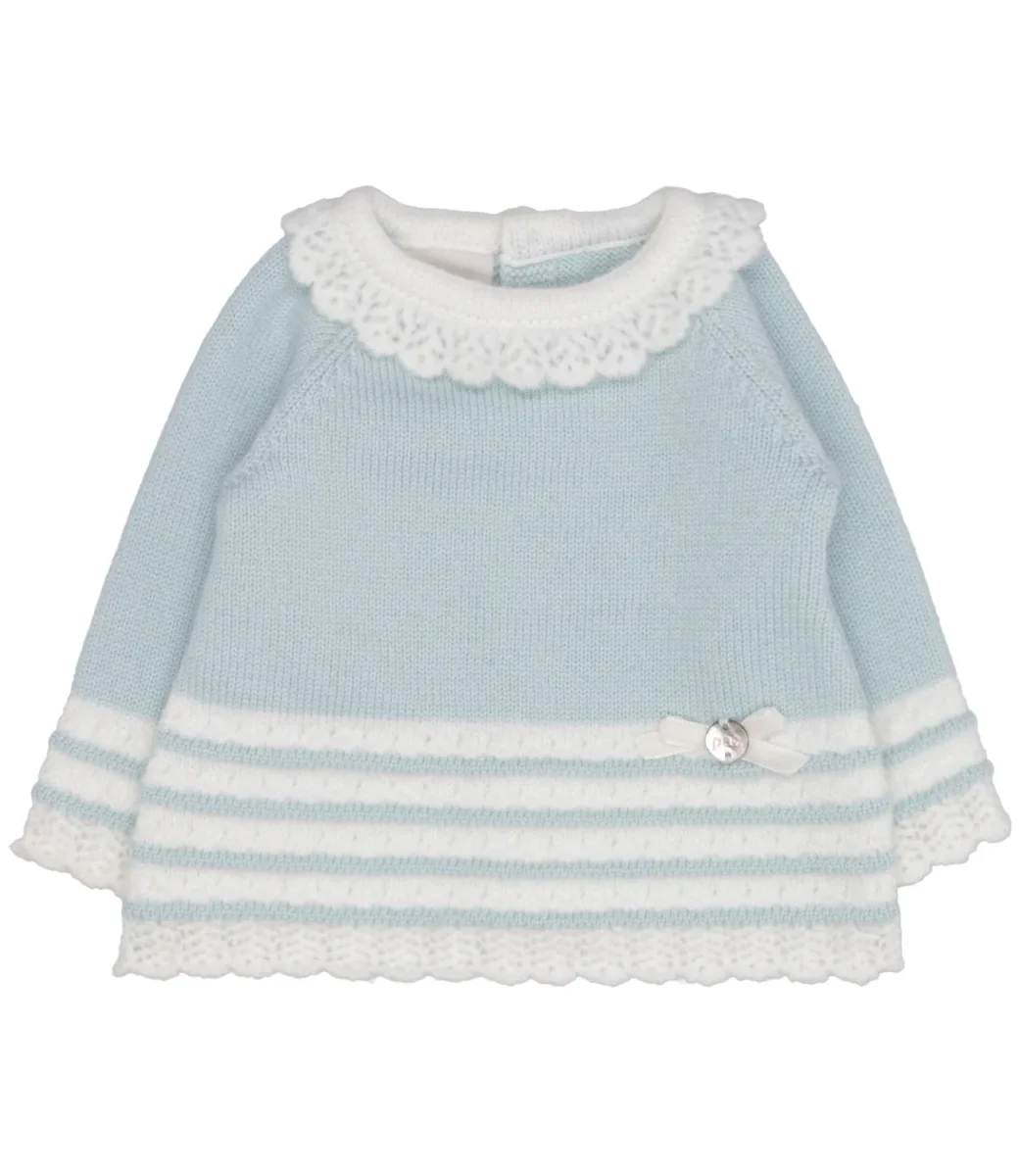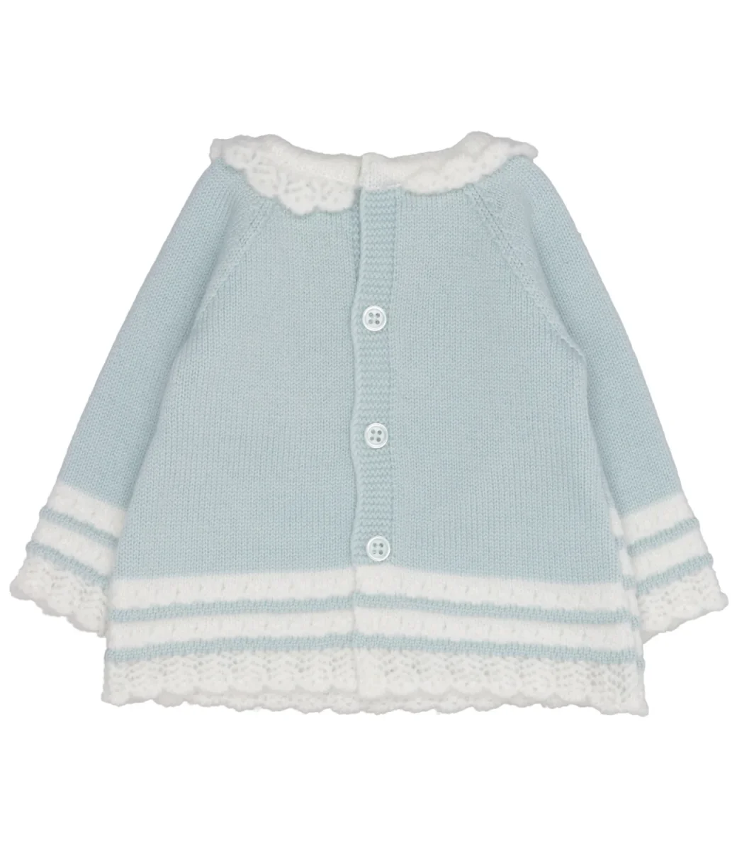 Maglia Paz Rodriguez Ruisenor in lana, lavorato con motivo a maglia, colletto volant in maglia di lana ricamata, chiusura con bottoni sul retro, maniche lunghe con polsini decorati con un ricamo, fondo decorato con ricamo e logo applicato sul laterale.