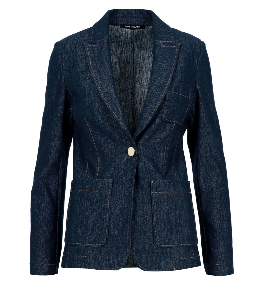 Blazer Pennyblack Oliera in denim. Elegante e versatile, si adatta perfettamente a look sia casual che formali.